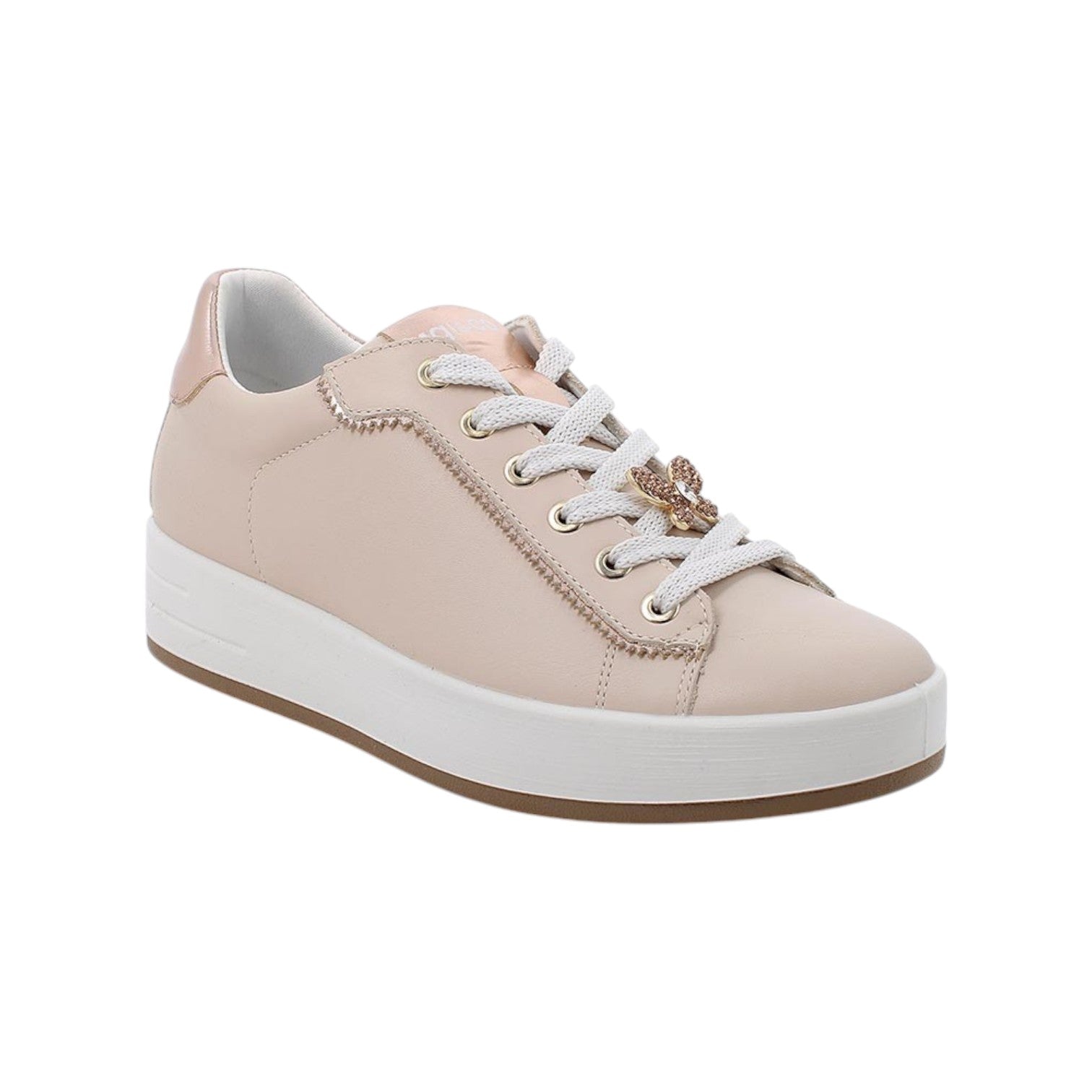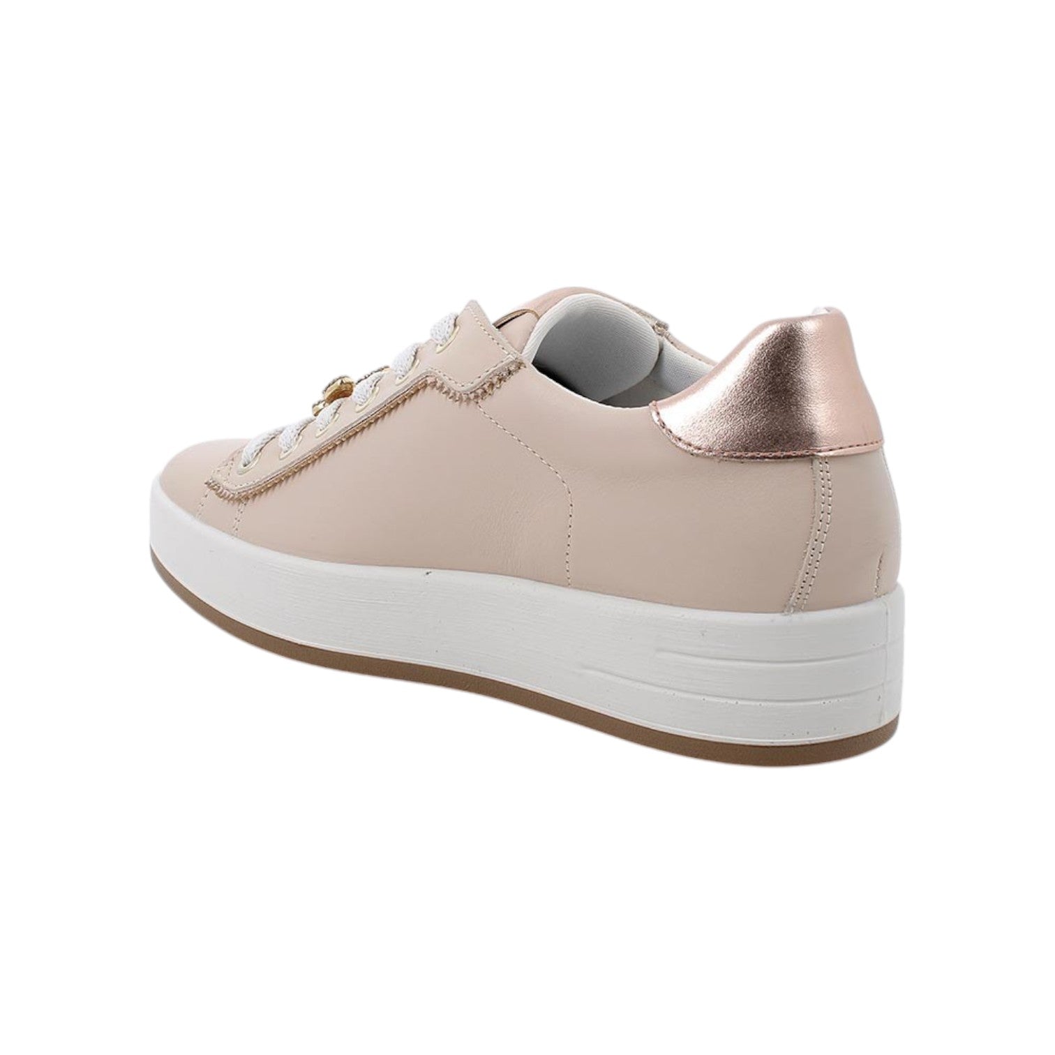 La Sneakers firmata Igi&Co, realizzata in pelle con eleganti dettagli oro, queste sneakers sprizzano stile da ogni angolazione. Il charm removibile in oro e strass sui lacci aggiunge un tocco di luce, mentre il plantare imbottito ed estraibile è sufficientemente spesso da permettere l'inserimento di un supporto personalizzato. Il platform da 4cm assicura comfort e slancio alla silhouette.