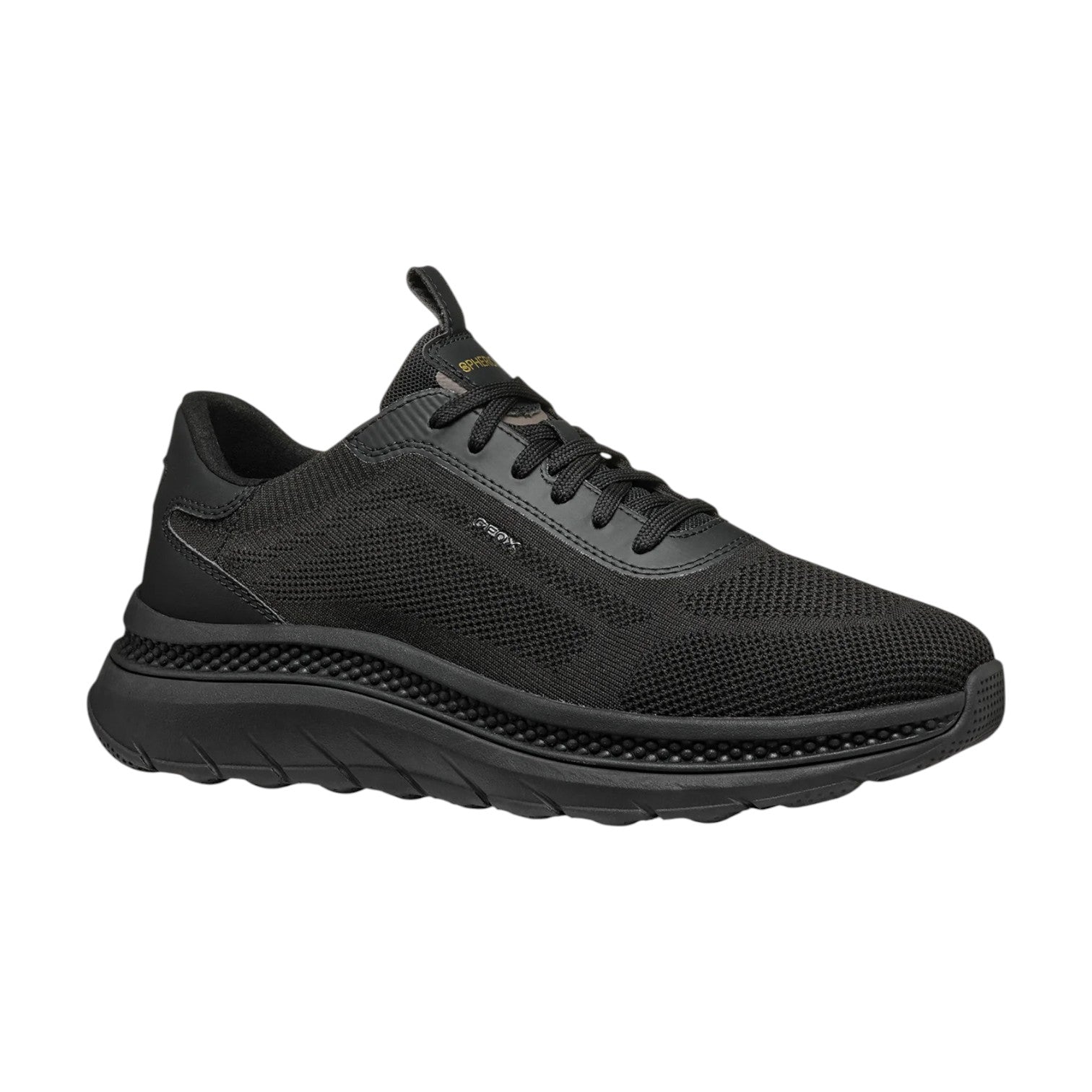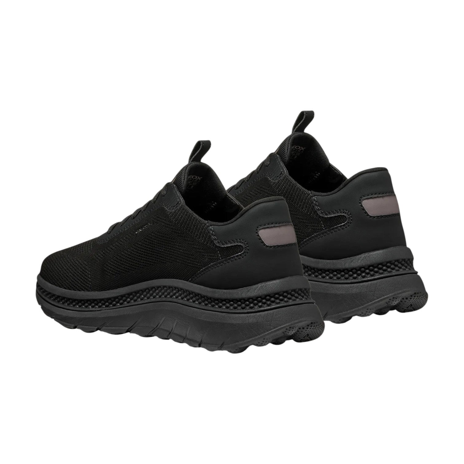 La Sneakers firmata Geox, comoda, traspirante e ultra-ammortizzata, pensata per l'uso quotidiano. Questa versione è realizzata in ecopelle e tessuto in un'intramontabile tonalità nera e sprigiona un fascino sobrio e un'energia dinamica al tempo stesso. Presenta linguetta con patch logo e tirante anteriore con suola in gomma.
