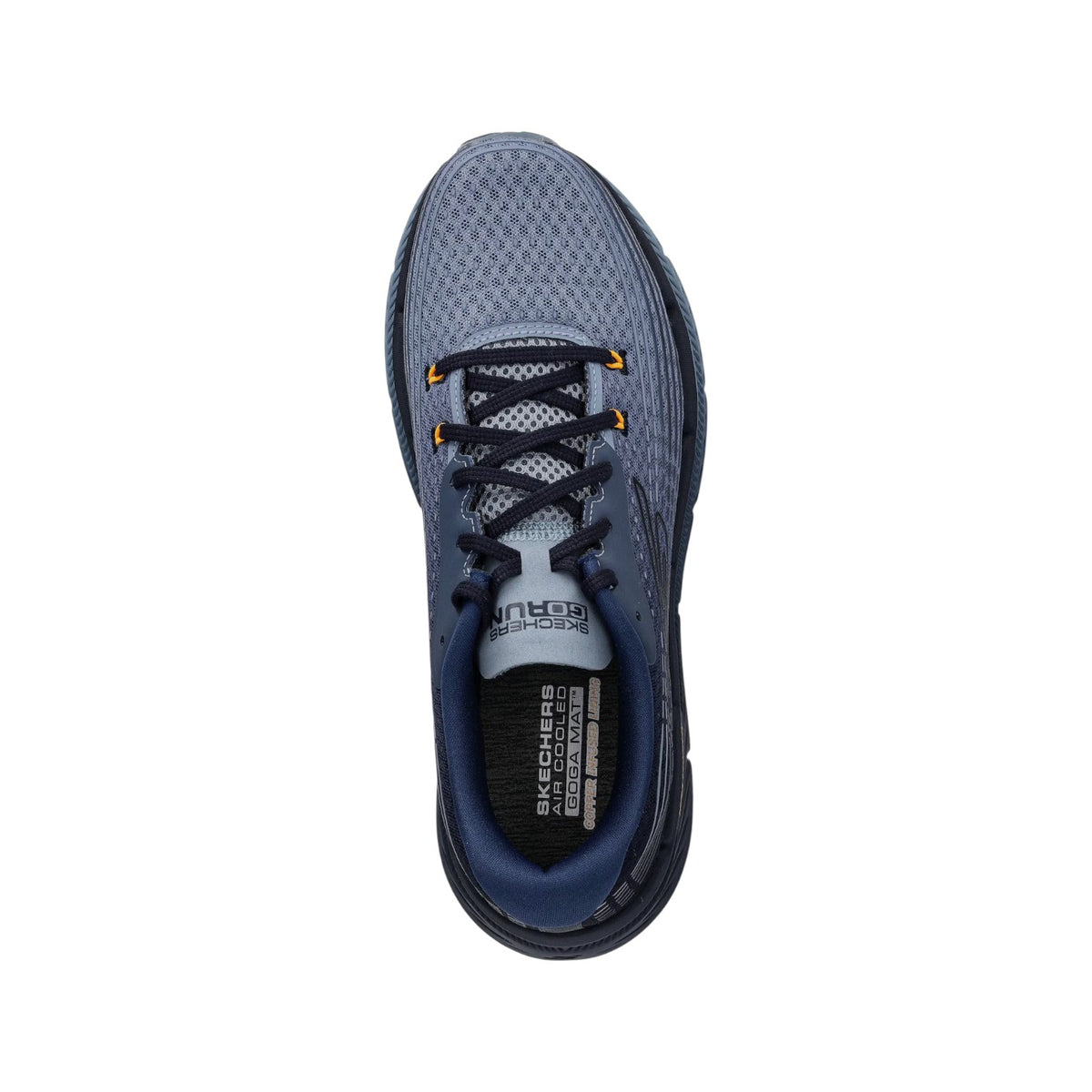 La Sneakers firmata Skechers, realizzata in tessuto ingegnerizzato azzurro e blu con dettagli cielo. Suola in gomma con tecnologia Max Cushion che garantisce resistenza, trazione e stabilità. Sottopiede estraibile Air Cooled Goga Mat per un estremo comfort e benessere. Scarpa adatta sia per la corsa che per la semplice passeggiata.