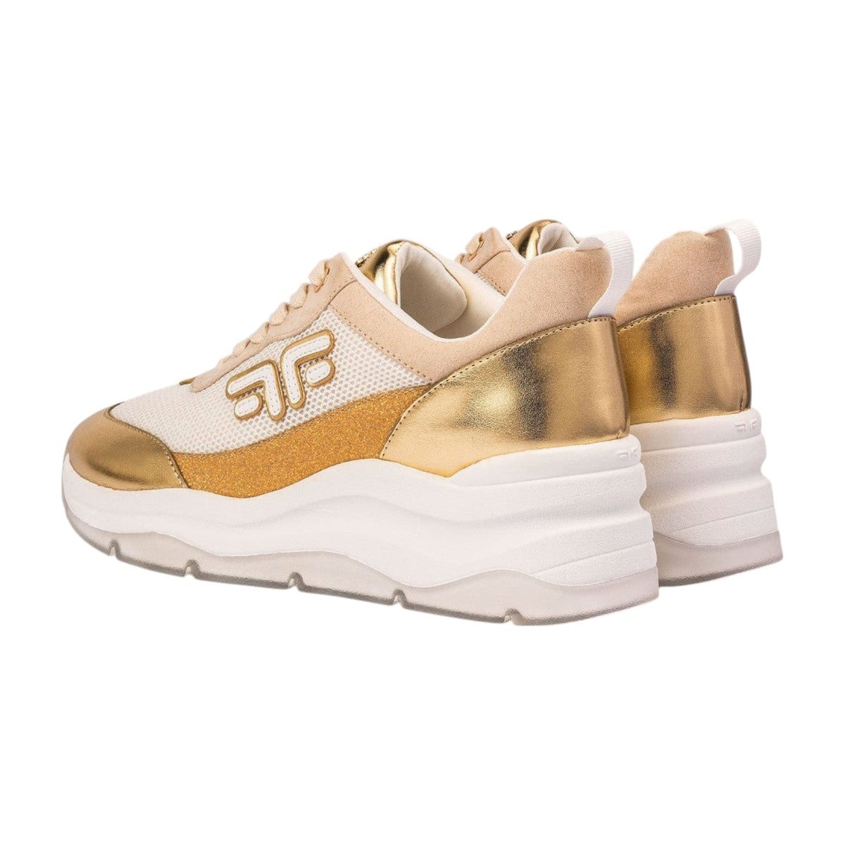 La Sneaker firmata Fornarina della linea Manila, con suola chunky bicolor in gomma che eleva il suo stile casual grazie ad accenti di colori pastello e gold, mix di materiali e dettagli 100% Fornarina come il logo laterale e la corona dorata sulla linguetta.