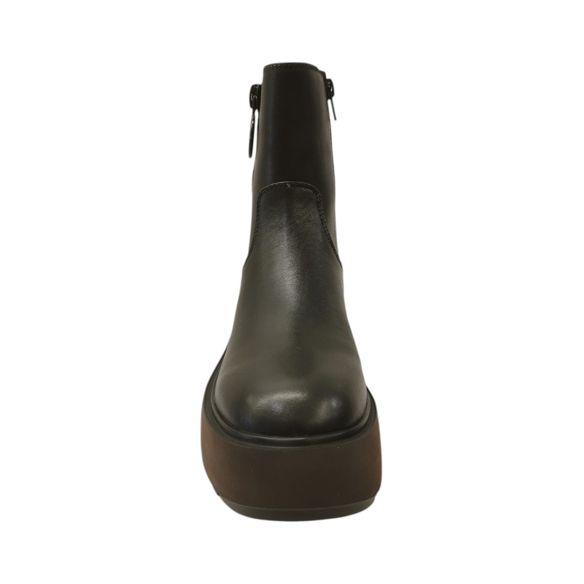 CafèNoir Stivaletto Donna in Morbida Pelle Testa di Moro con Zeppa e Doppia Zip