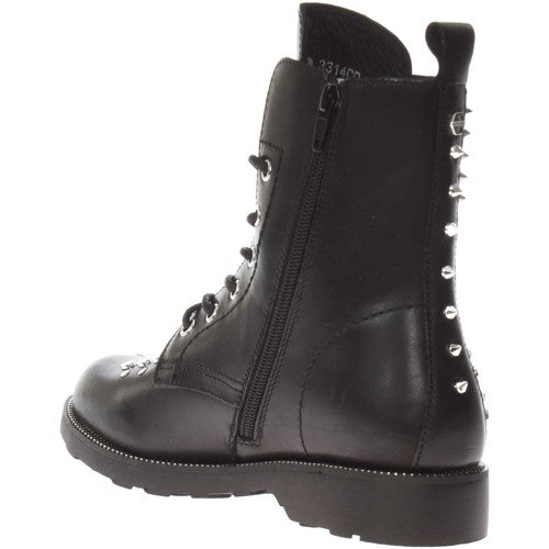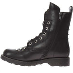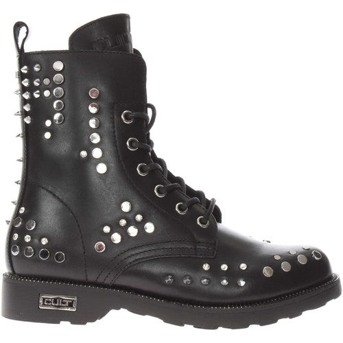 Intramontabili questi anfibi firmati Cult della famiglia Zeppelin. In pelle nera, volumi aumentati con un misto di borchie che giocando tra loro formano disegni ad incastro quasi a ricordare un tetris metallico e chiusura con stringhe, questi anfibi conferiranno un tocco rock ad ogni vostro outfit.