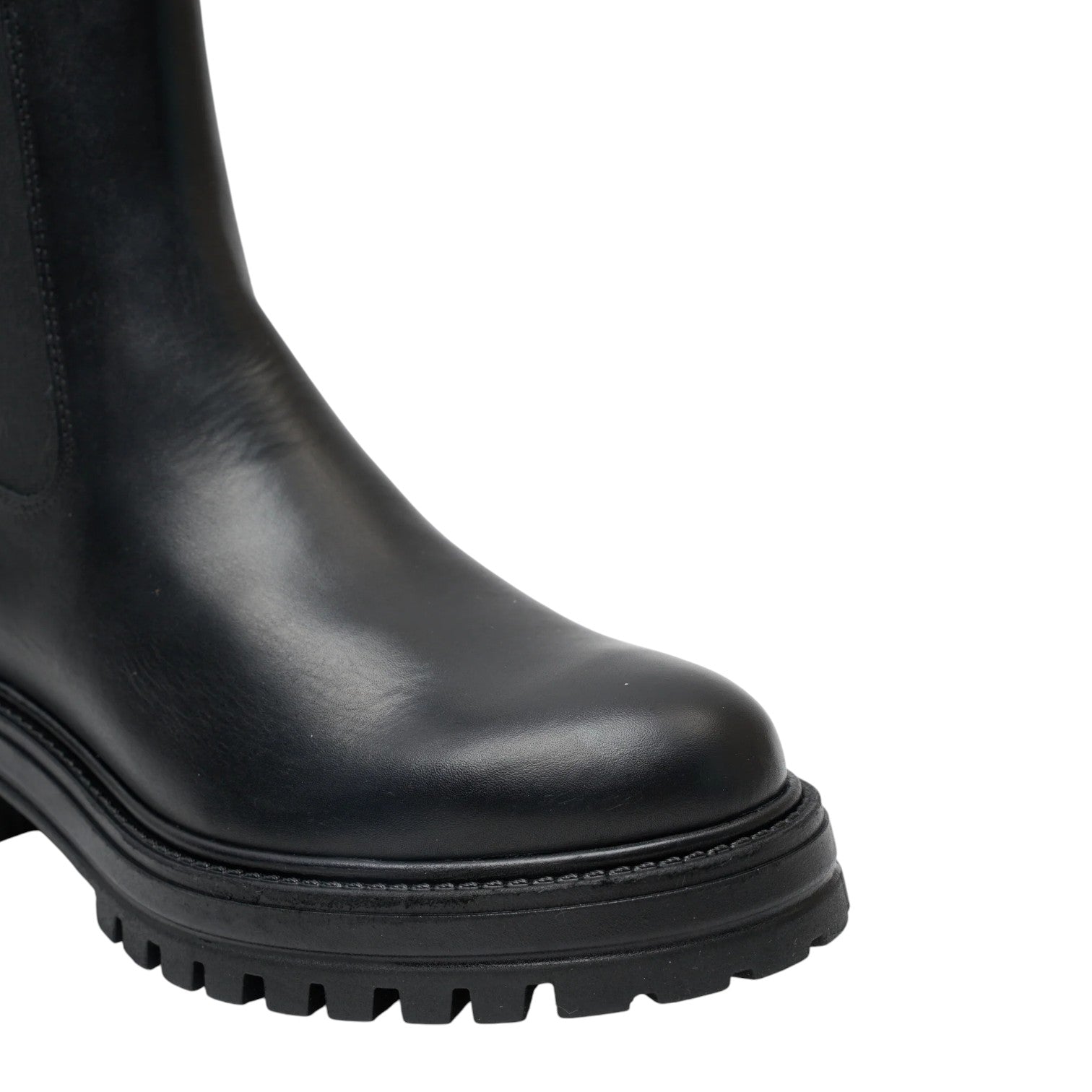 Francesco Brunelli Beatles Donna in Pelle Nera con Elastico Laterale
