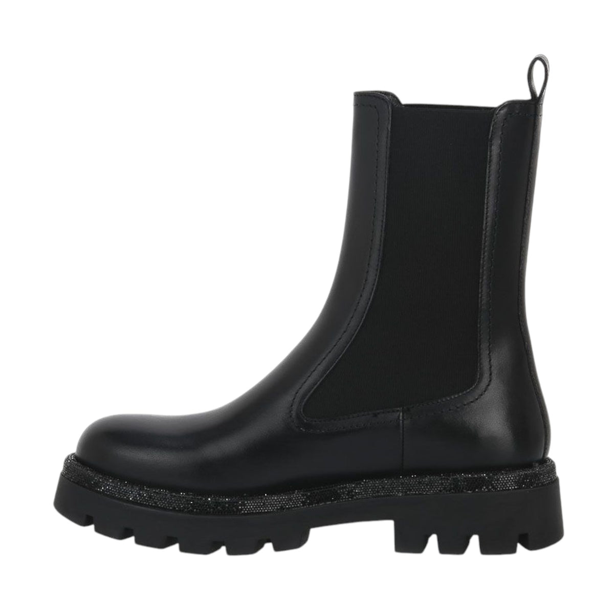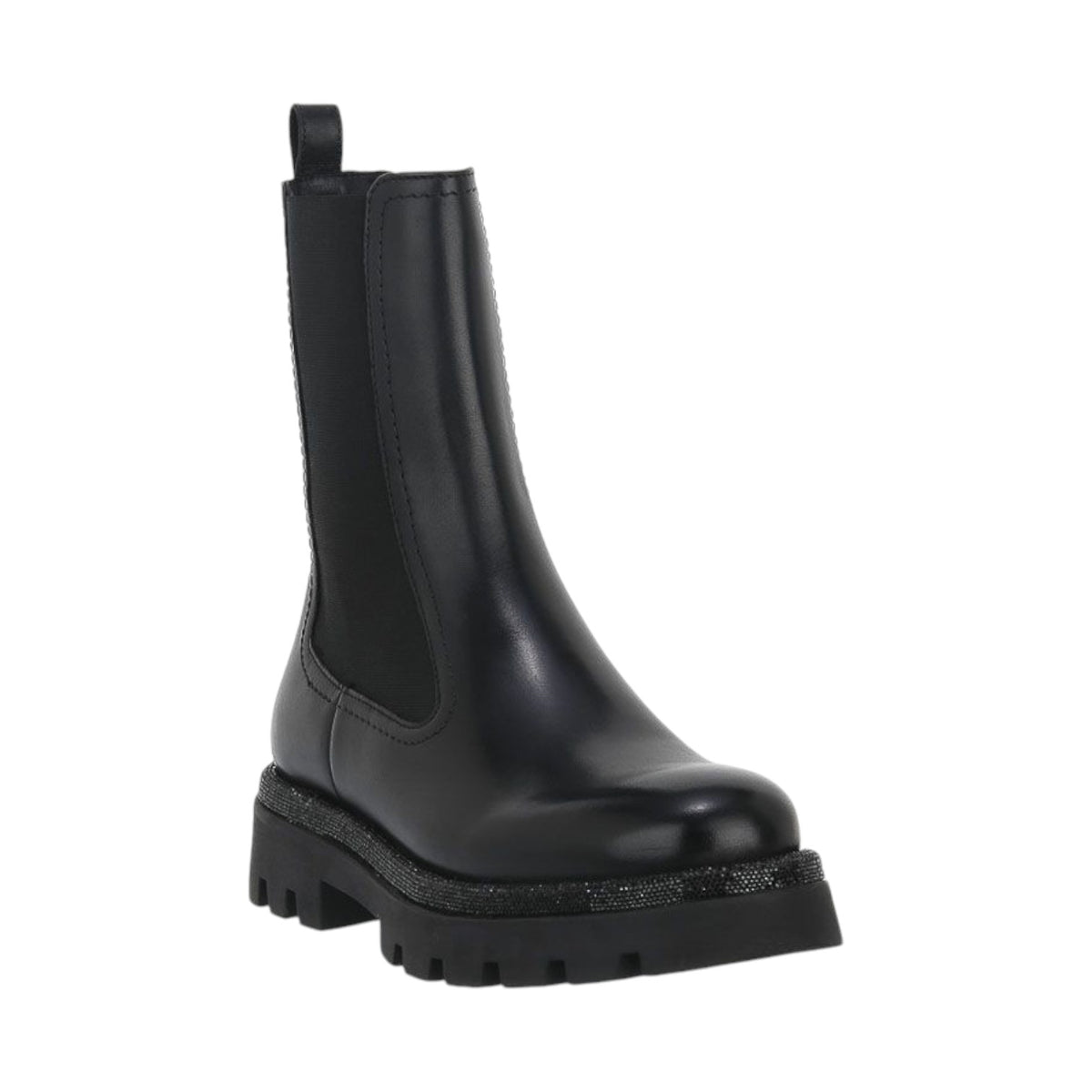 Lo Stivaletto firmato Keys, realizzato in pelle modello a punta tonda è caratterizzato da elastici in tessuto laterali e da dettagli con micro strass, diventa il focus di tutti gli outfit sia urban che casual.