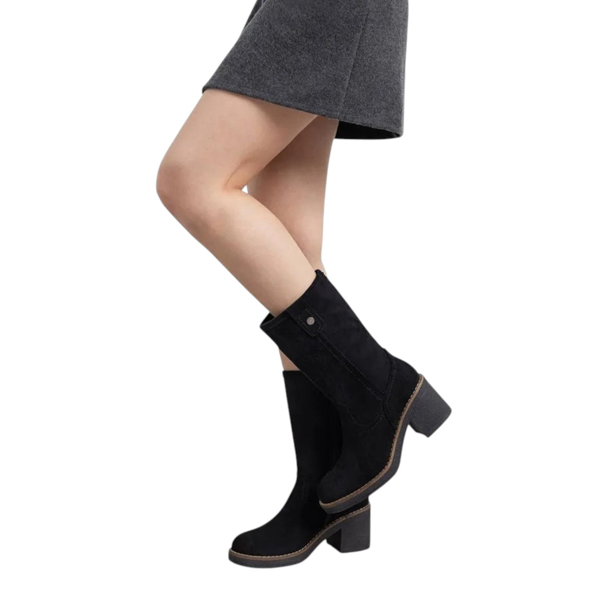 Refresh Stivale Donna in Camoscio Nero con Tacco Largo Alto 70mm