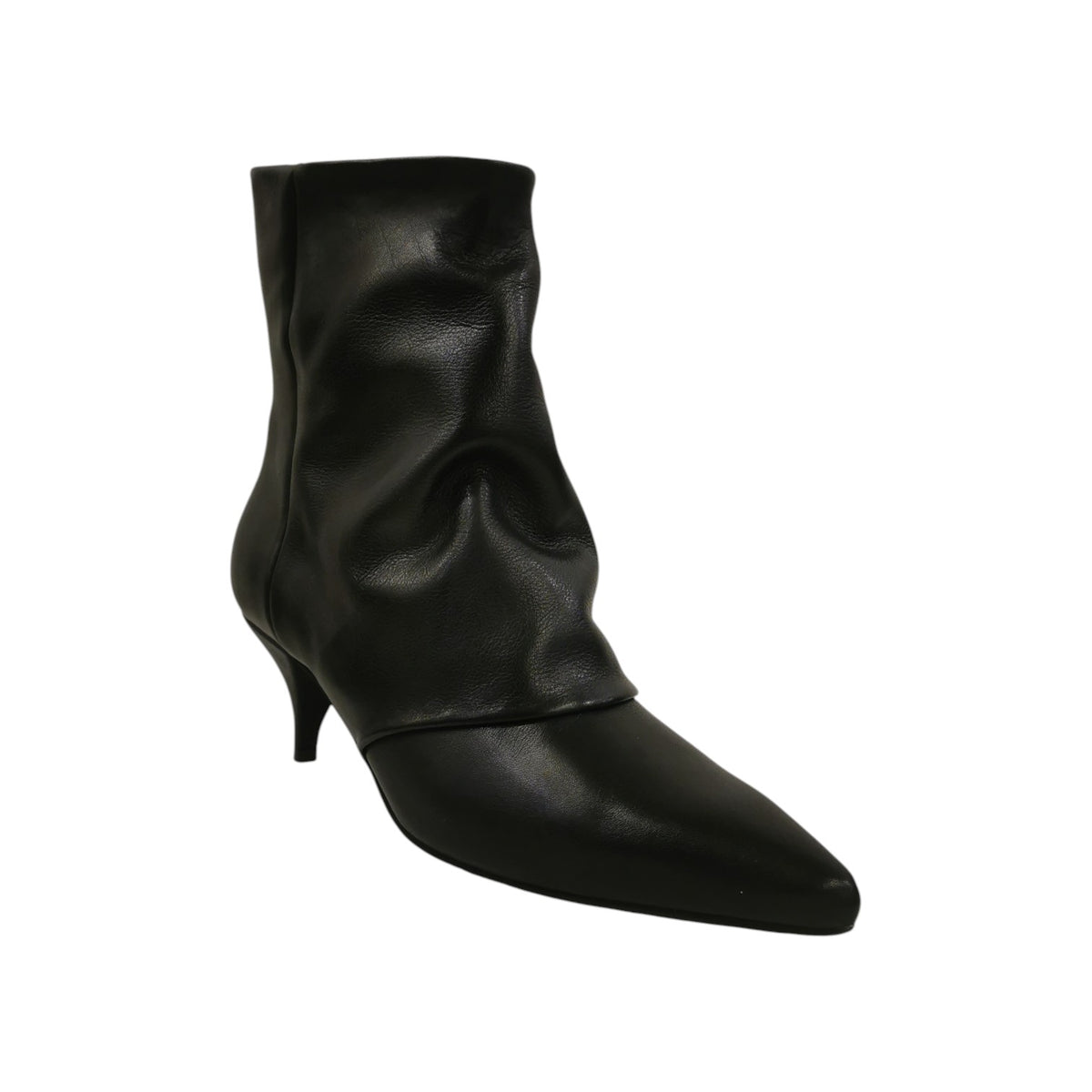 Lo Stivaletto firmato The Icona, realizzato in pelle è caratterizzato da gambale morbido con risvolto e da un tacco a stiletto che conferisce un tocco di femminilità. La silhouette affusolata e il rivestimento in pelle creano un equilibrio perfetto tra comfort e stile. La tonalità nera rende il modello versatile, adatto a diverse occasioni e facilmente abbinabile a vari outfit.