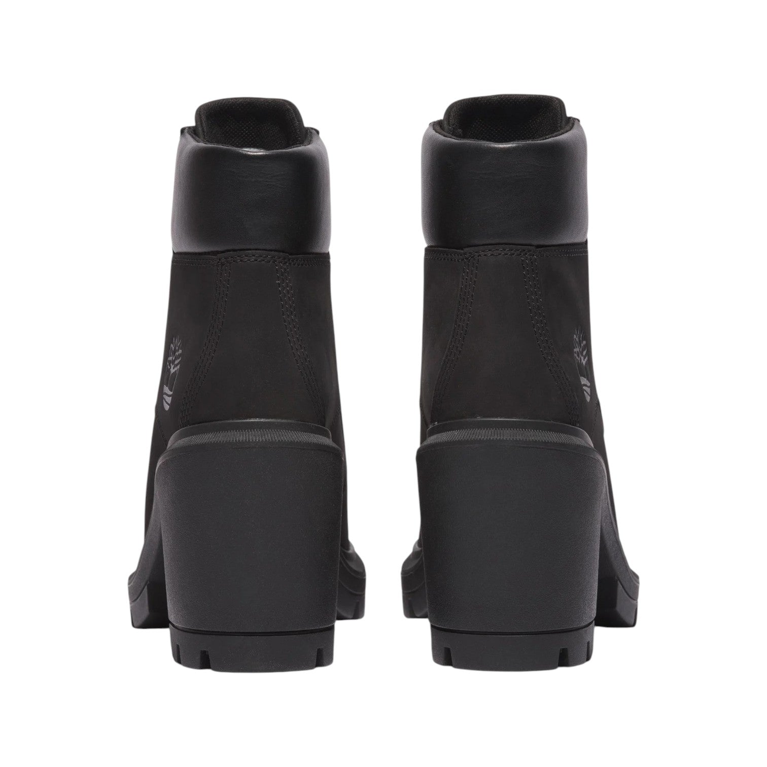 Timberland Stivaletto Donna in Nabuck Nero con Tacco Largo Alto 100mm Allinghton Heights Mid Lace Up