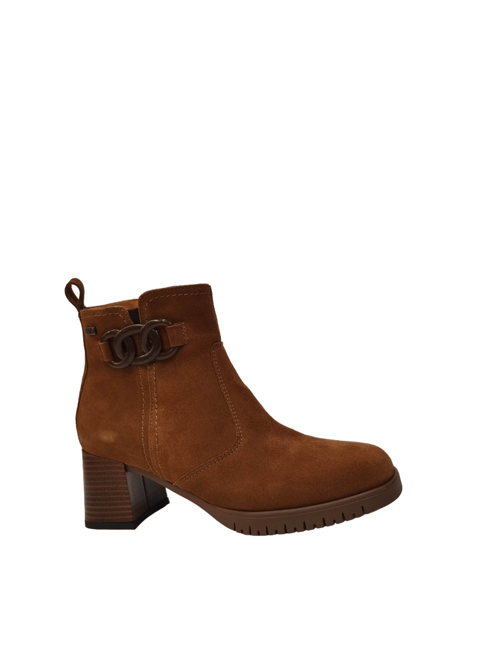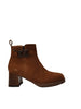 Lo Stivaletto firmato Valleverde, realizzato in camoscio è caratterizzato da un accessorio laterale e una morbida fodera interna in tessuto e sottopiede in pelle. Modello con punta quadrata, fondo in gomma e tacco di alto 6cm.