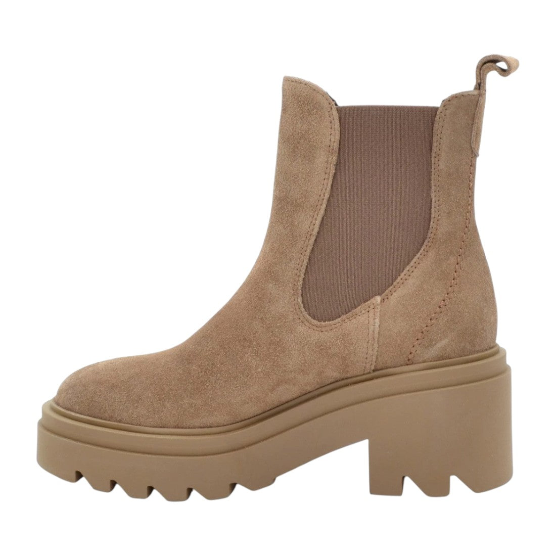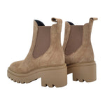 Francesco Brunelli Stivaletto Donna in Pelle Scamosciata Beige con Elastico Laterale e Tacco Largo Alto 70mm