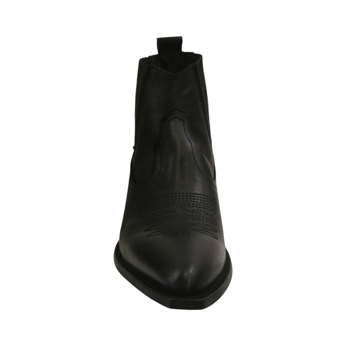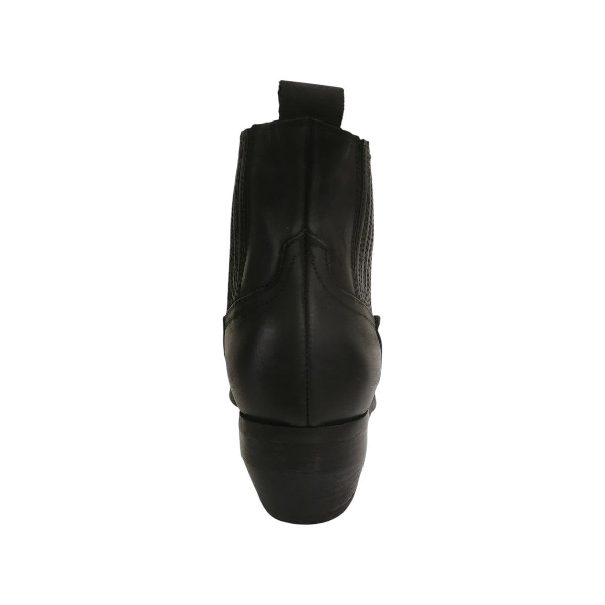 Il Camperos firmato Agua, un prodotto Made in Italy realizzato in pelle nella variante nera è caratterizzato da particolare disegno cucito frontale e da una punta sfilata, presenta una linguetta posteriore per facilitarne la calzata e un tacco di 5cm.