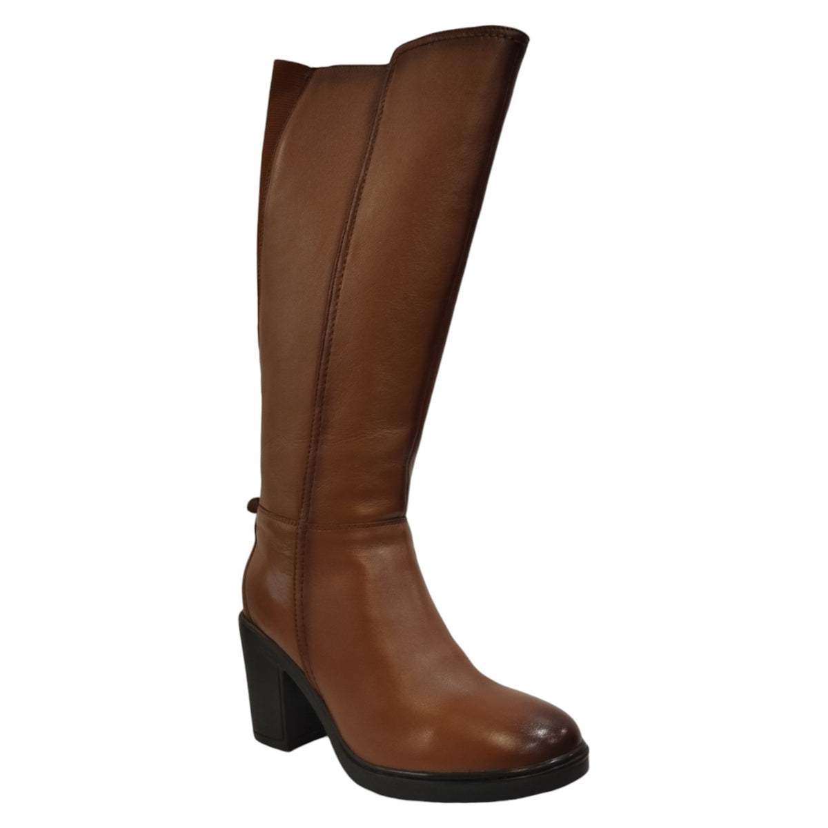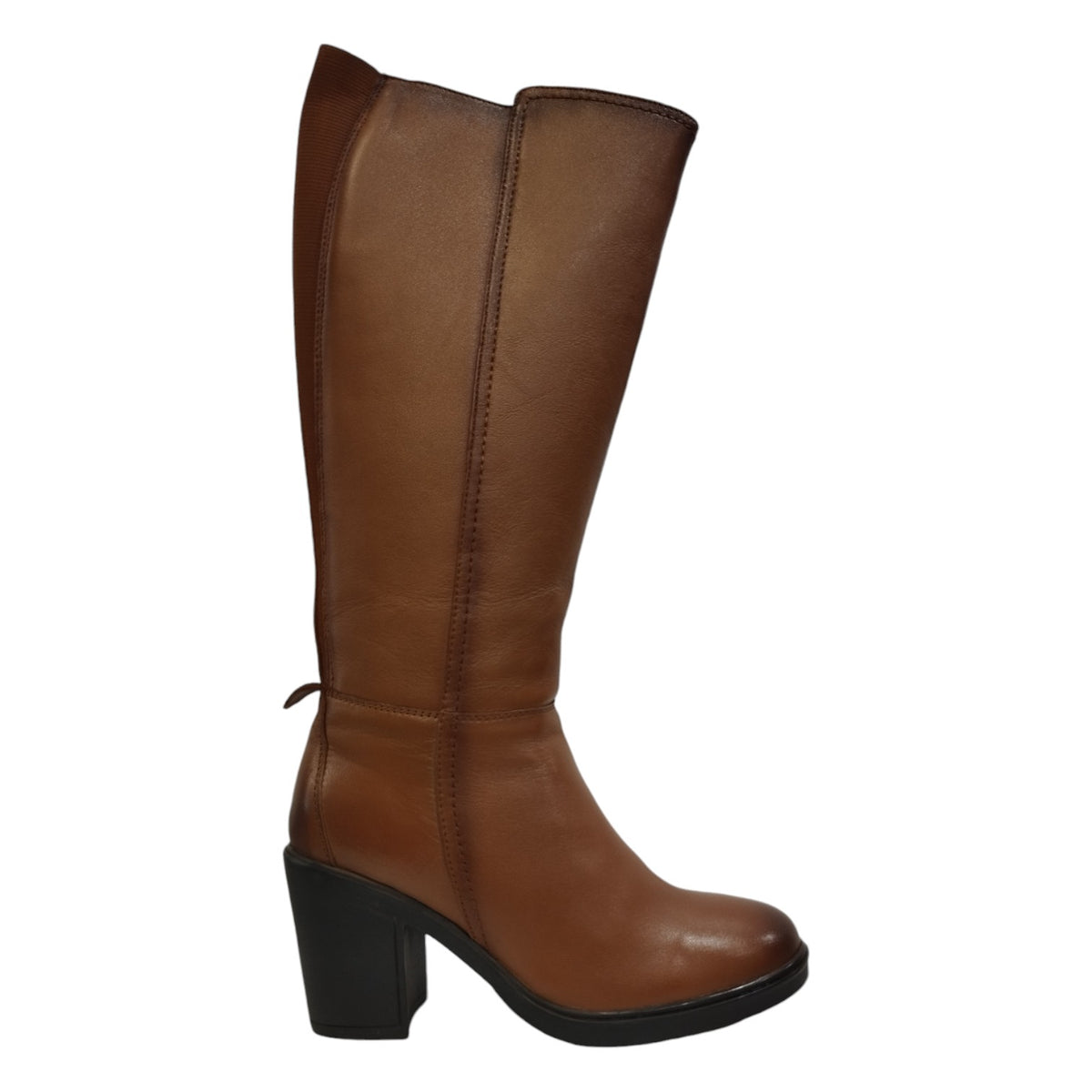 Cayetano Giménez Stivale Alto Donna in Pelle Cuoio con Tacco Largo di 8cm