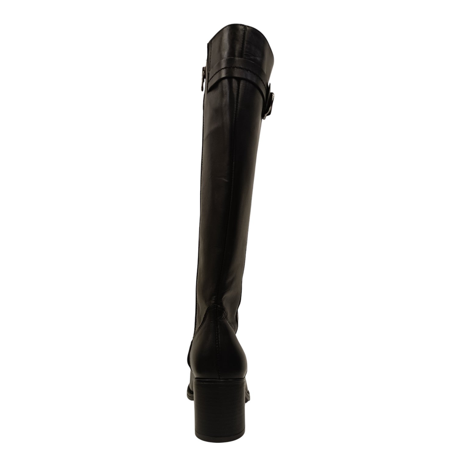 Francesco Brunelli Stivale Donna in Pelle Nera con Fibbia Laterale e Tacco Largo Alto 70mm