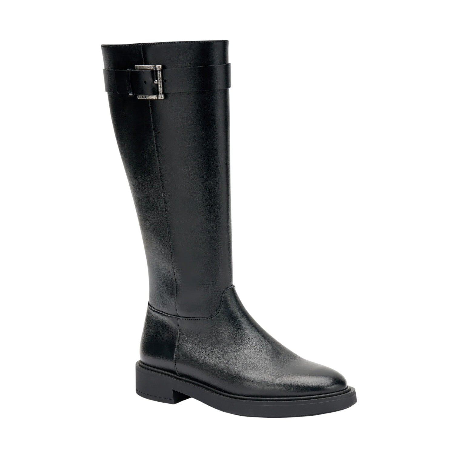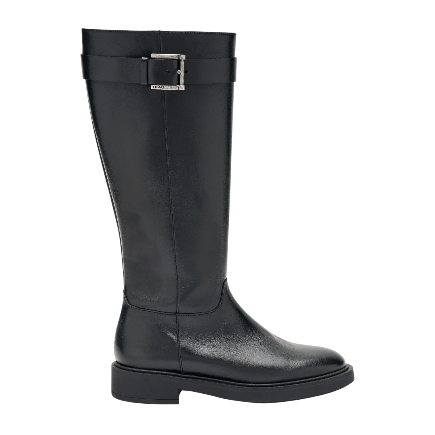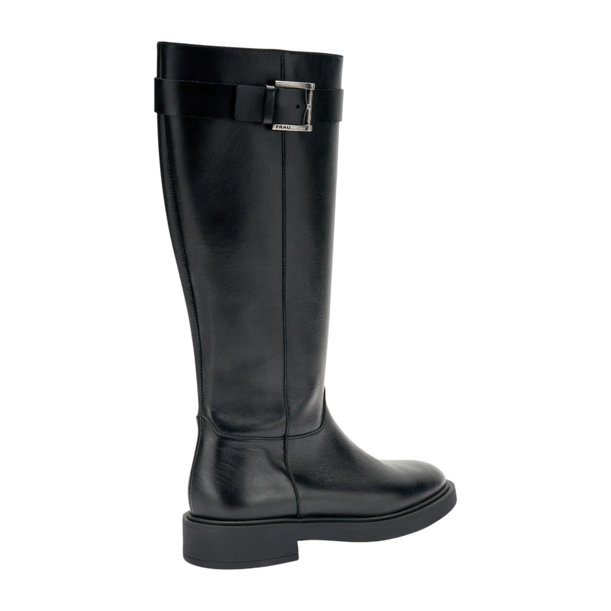 Lo Stivale firmato Frau, realizzato in pelle nera è caratterizzato da pratica zip laterale e cinturino con fibbia decorativa, presenta un morbido sottopiede foderato in pelle e profili foderati in pelle interno in tessuto.