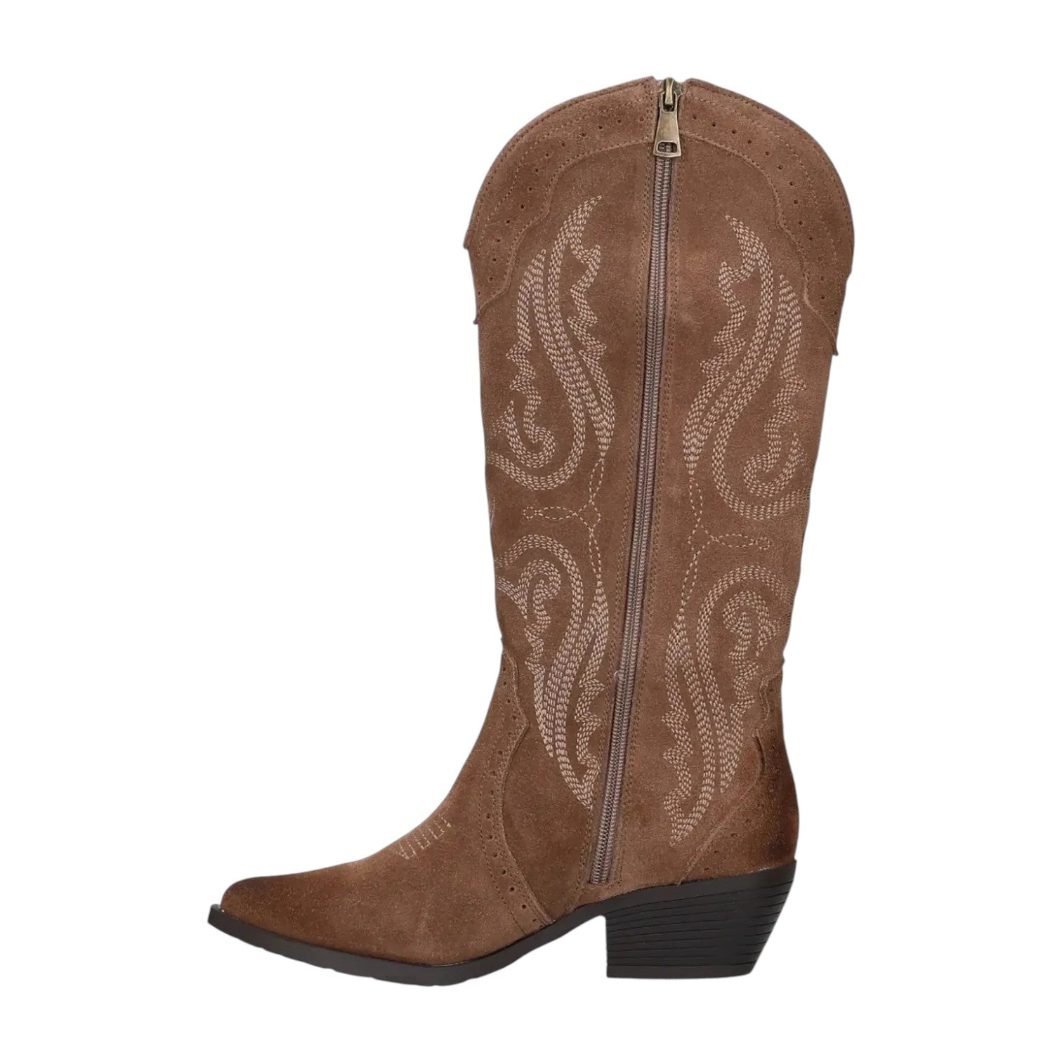Ikaros Camperos Donna in Camoscio Tortora con Ricami e Tacco Largo Alto 50mm