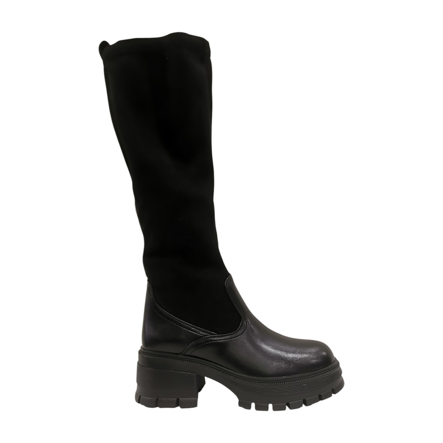 Keys Stivale Lungo Donna in Ecopelle Nera con Platform