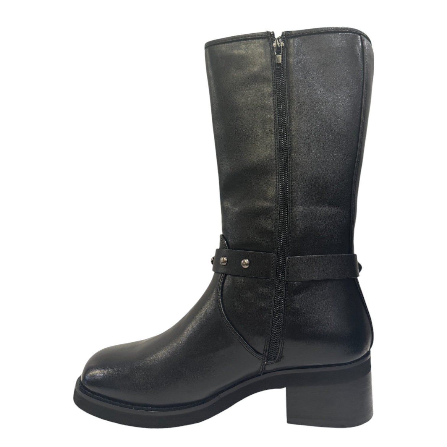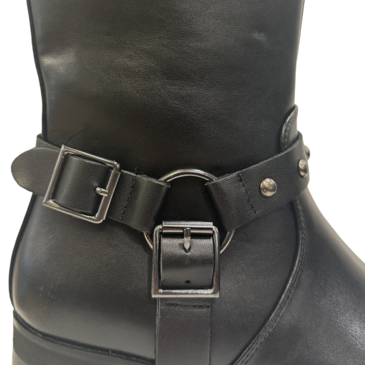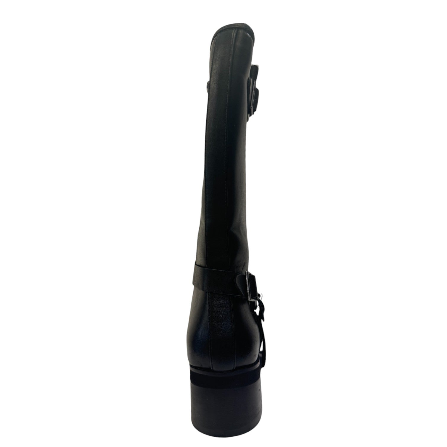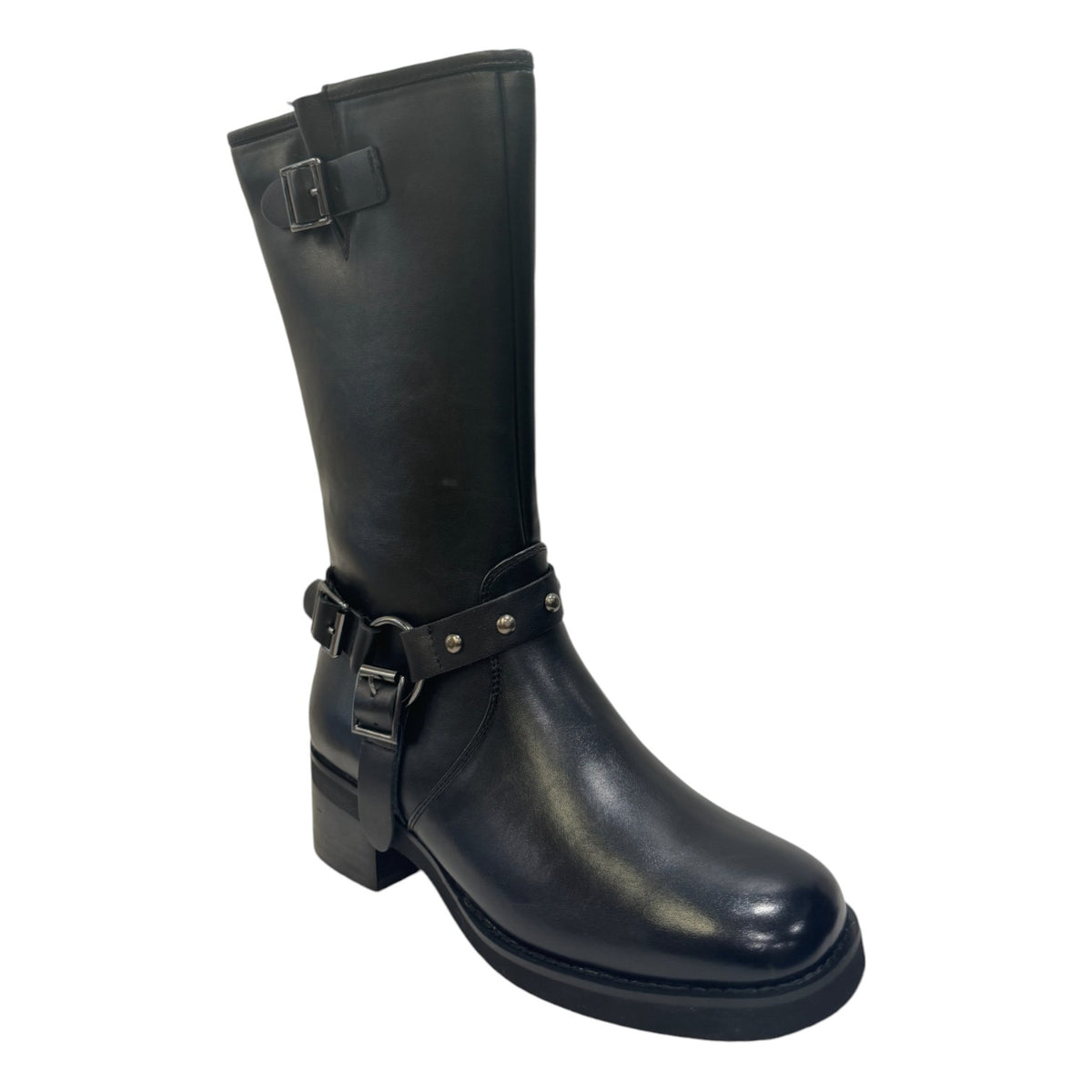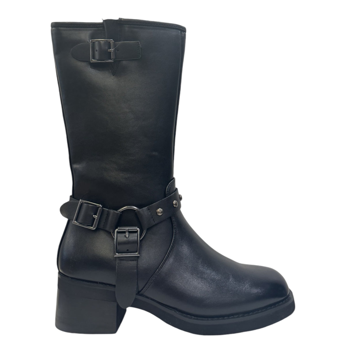Keys Stivale Donna in Misto Pelle Nero con Doppia Fibbia e Tacco Largo 50mm