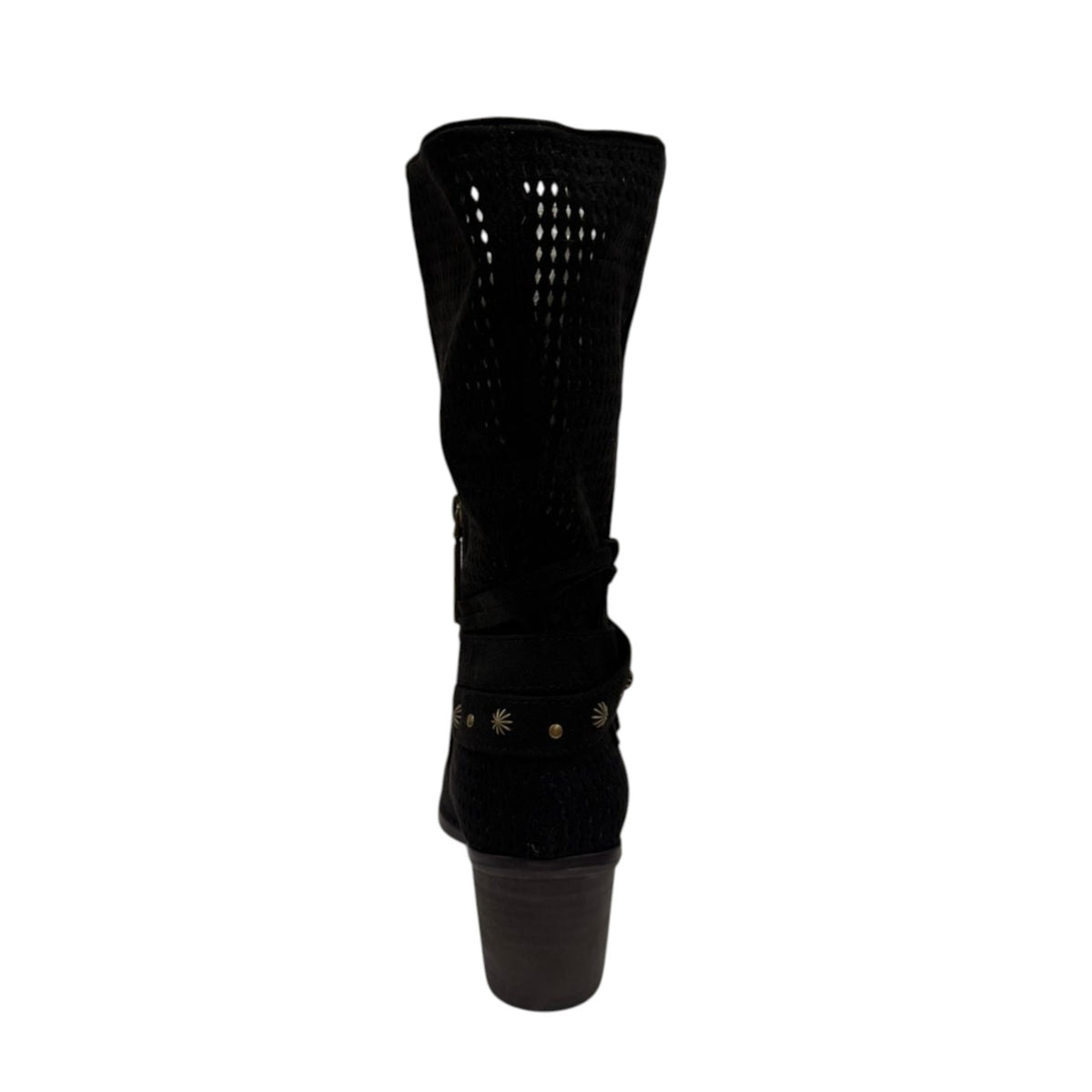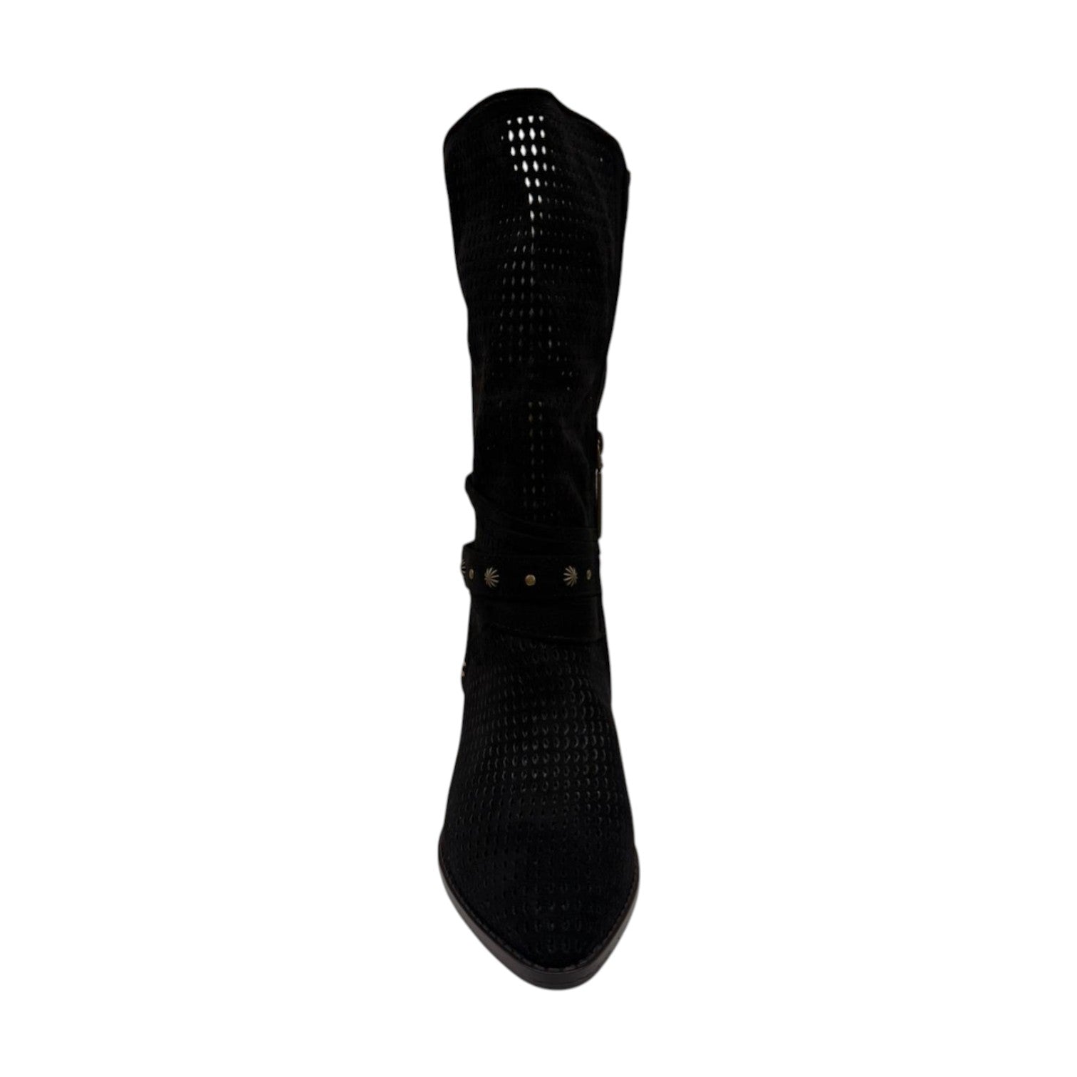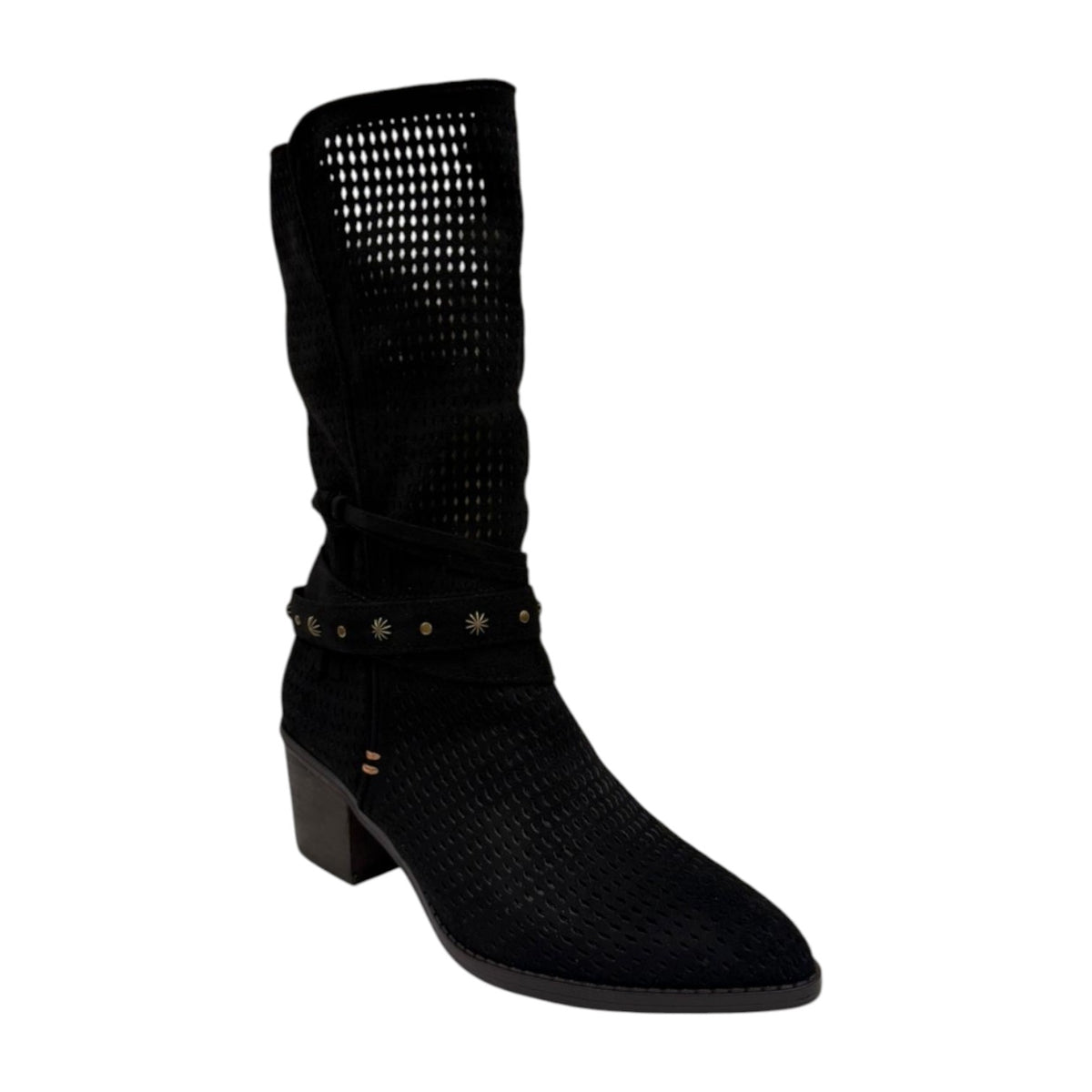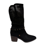 Refresh Stivale Camperos Donna in Camoscio Traforato Nero con Tacco Effetto Legno Alto 40mm