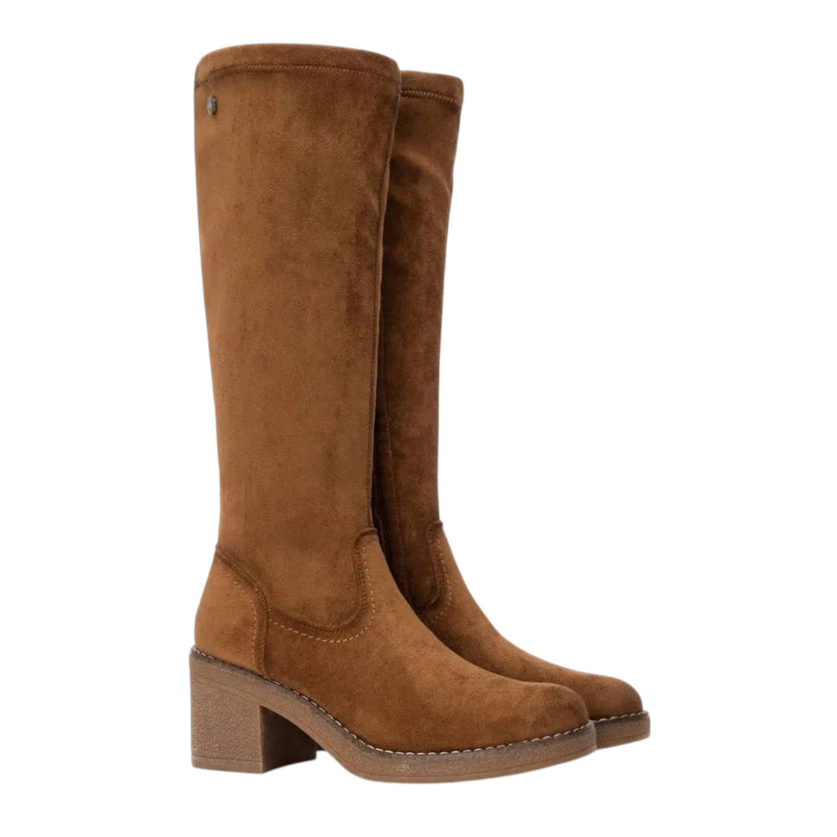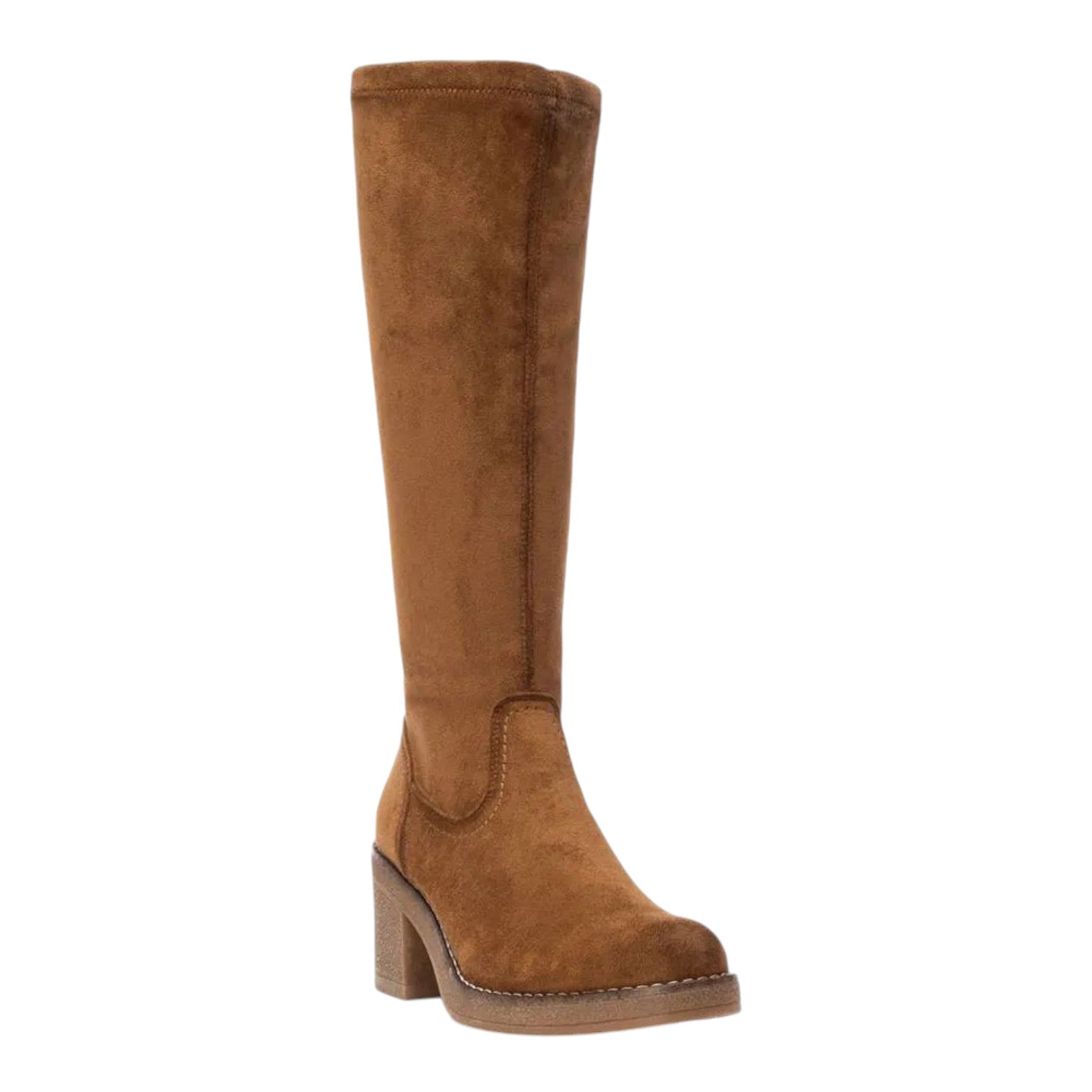 Refresh Stivale Donna in Camoscio Camel e Tacco Largo Alto 70mm