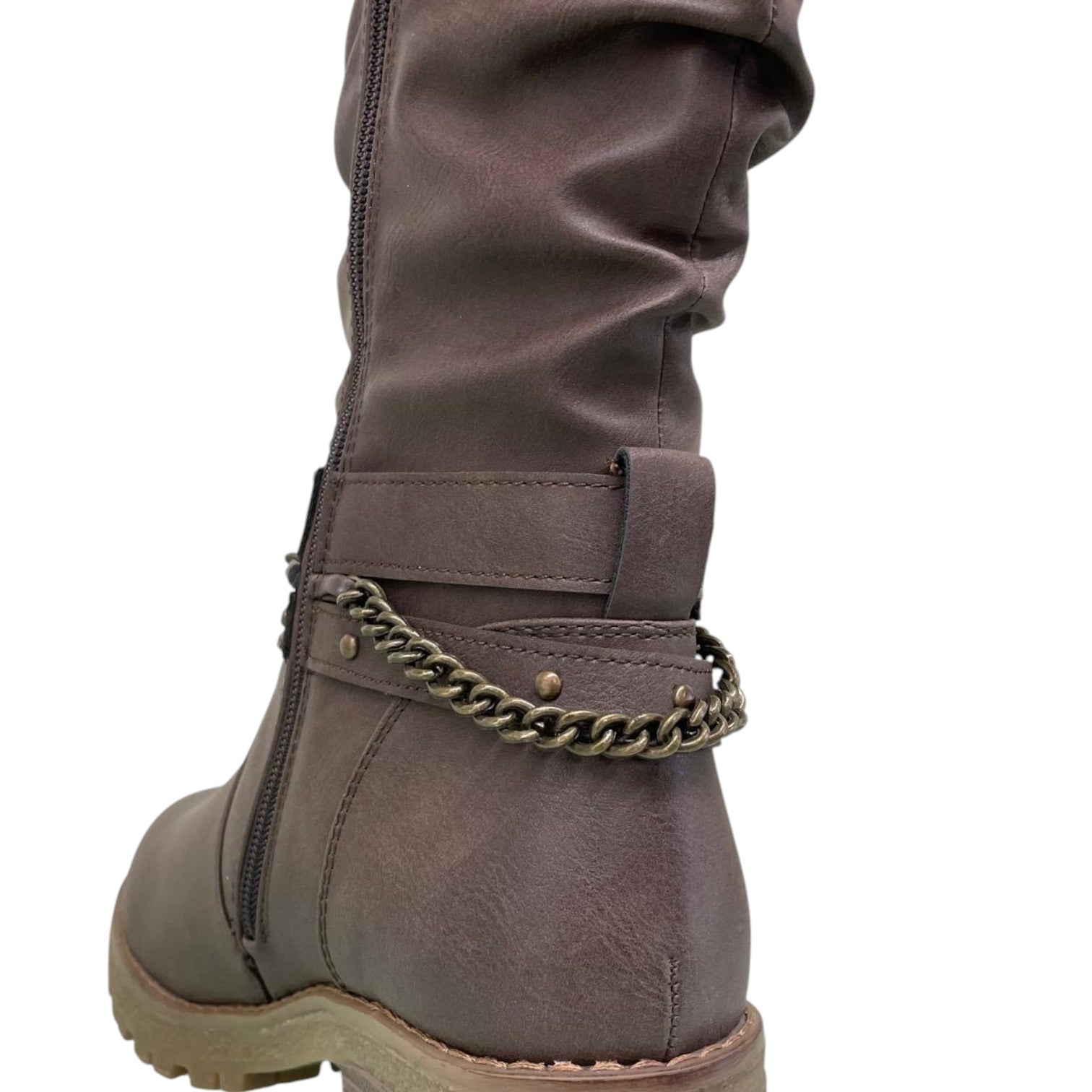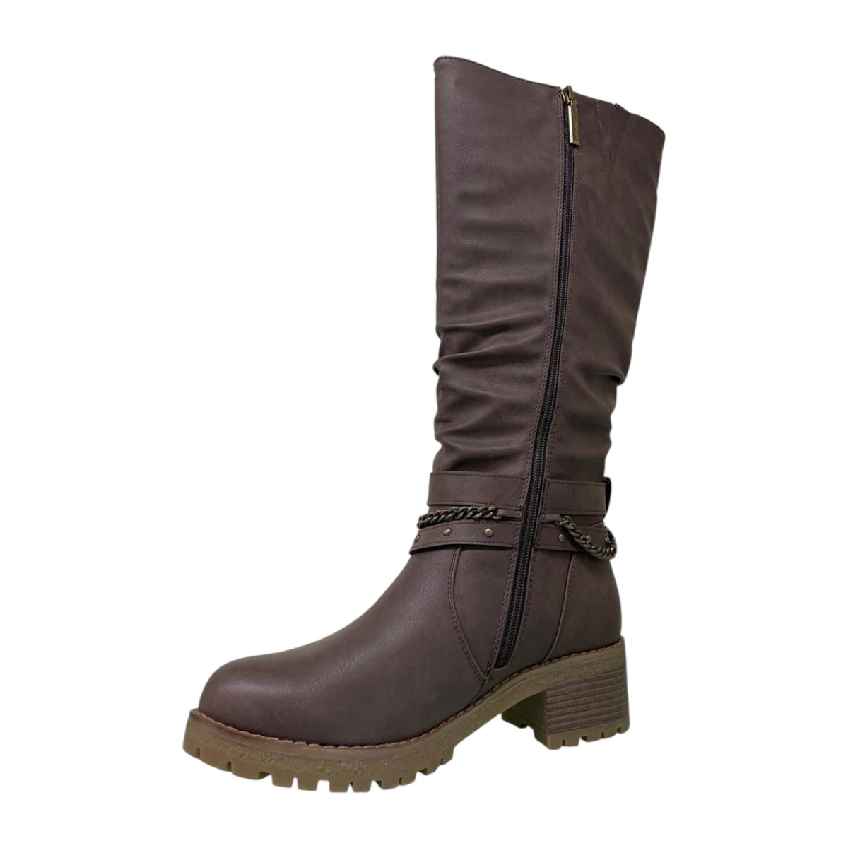 Refresh Stivale Donna in Ecopelle Marrone con Fibbia e Catena