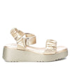 Il Sandalo firmato Carmela realizzato in pelle dispone di, tomaia arricciata e cinturino alla caviglia con giarrettiera sul retro e chiusura a strappo. Piccola suola a zeppa in tinta con il modello e suola in gomma antiscivolo.