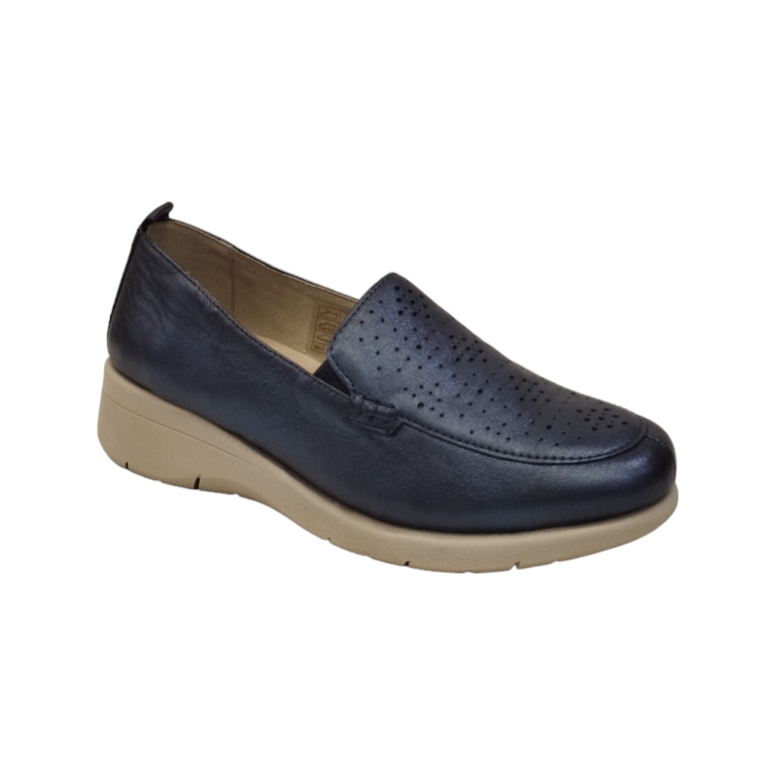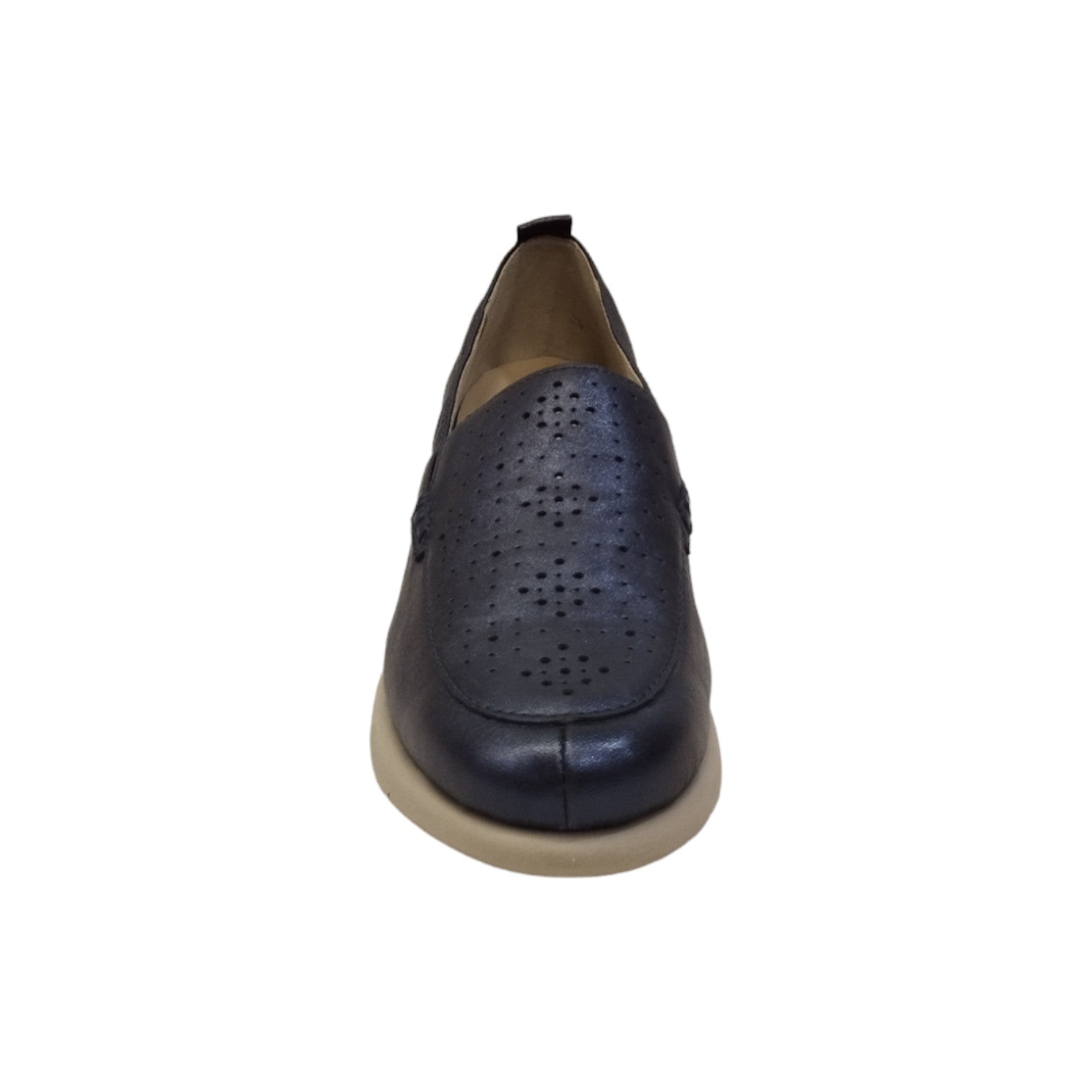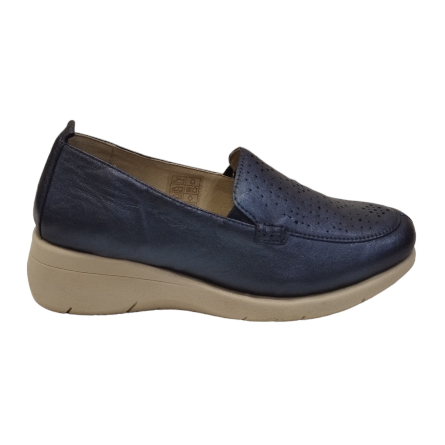 Susimoda Mocassino Blu Traforato in Pelle Laminata con Zeppa