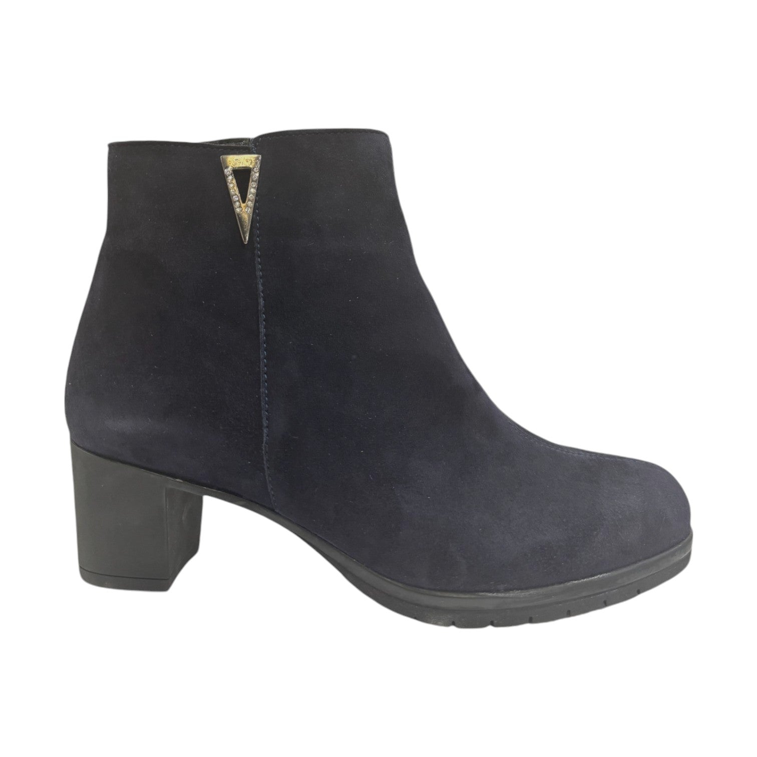 Il Tronchetto firmato Susimoda, realizzato in camoscio dal design raffinato è caratterizzato da accessorio metal/strass, con fodera e sottopiede in pelle, modello immancabile in un guardaroba femminile. Calzata comoda su tacco a blocco di 4cm e suola in gomma leggera e antiscivolo.
