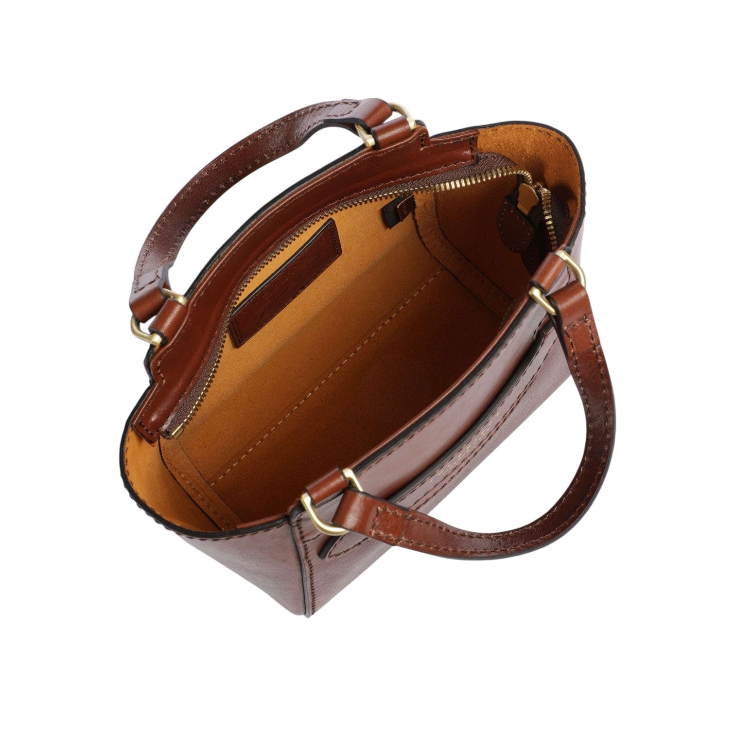 La Borsa a mano firmato The Bridge, realizzato in pelle qui proposto nella variante cuoio è caratterizzato da tracolla regolabile e removibile, l'interno è foderato in tessuto con chiusura a zip. Pensata per accompagnare la donna in tutti i momenti della giornata, questa borsa compatta ed elegante, può contenere tutto il tuo necessaire.