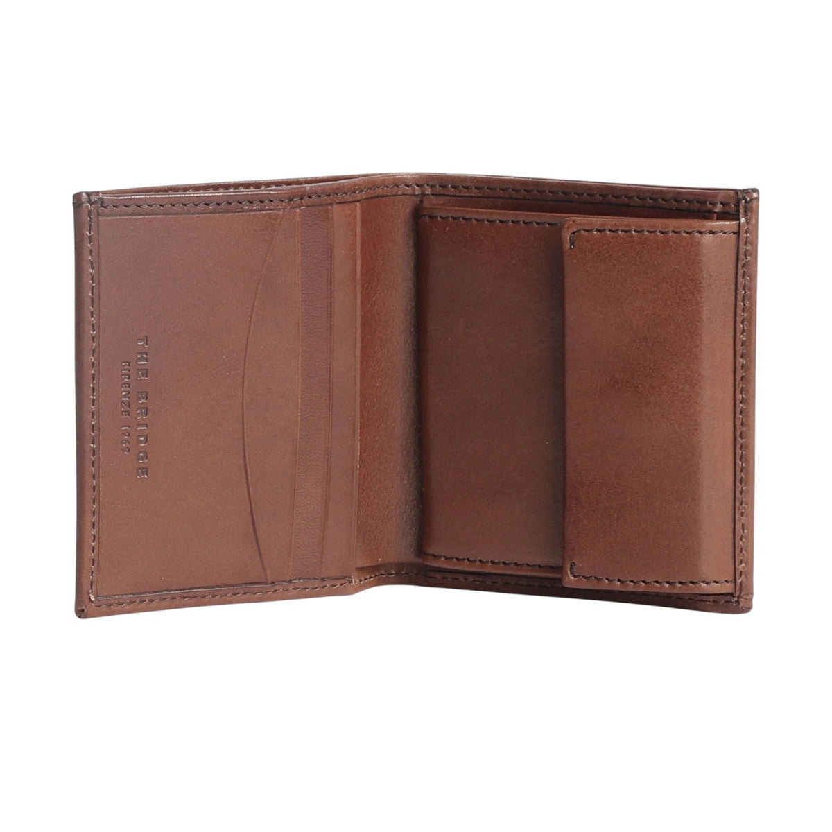 Il Portafoglio firmato The Bridge, della Linea Story realizzato in pelle è caratterizzato da portamonete interno con bottone e da tasca porta banconote, e da 3 scomparti per portatessere.