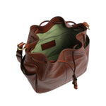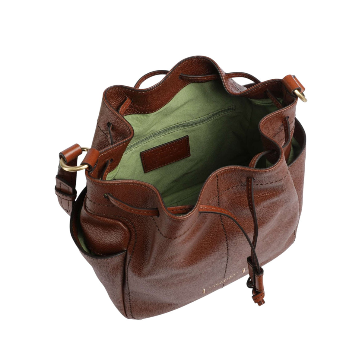 Il Secchiello firmato The Bridge, realizzato in pelle qui proposta nella variante cuoio è caratterizzato da chiusura a coulisse e da tracolla regolabile per portarlo a spalla, l'interno è foderato in tessuto di cui dispone di taschino con zip. Portala con te al lavoro o per un'uscita serale, grazie al suo design versatile e intramontabile.
