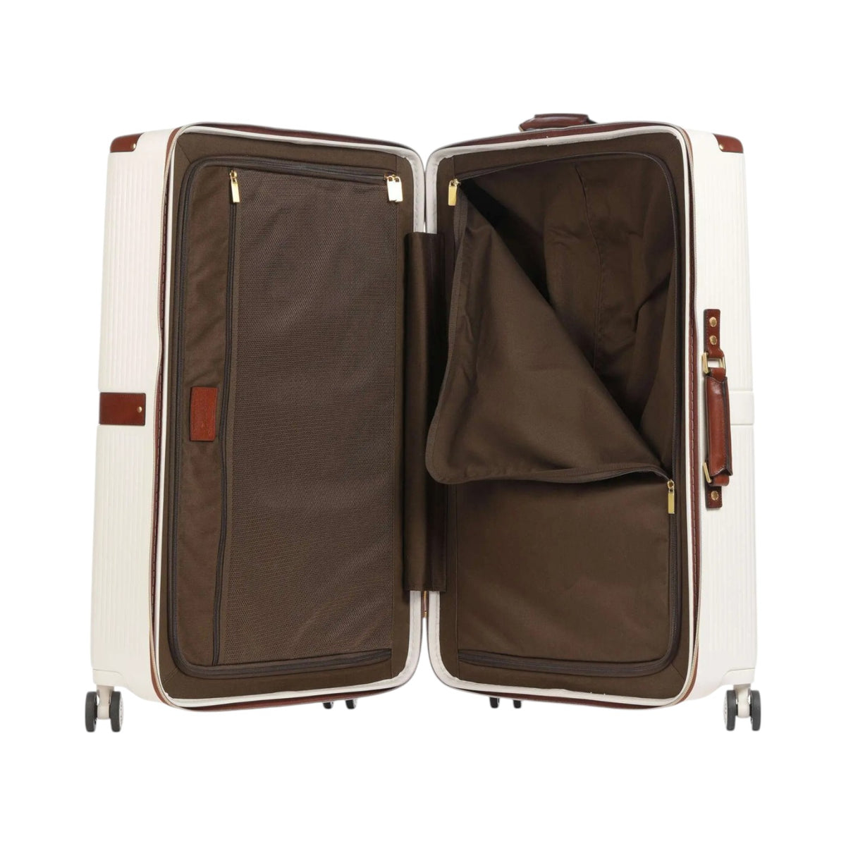 Il Trolley Medio firmato The Bridge, della Linea Story realizzato in pelle è caratterizzato da piedini protettivi di plastica e da chiusura frontale con zip a due vie (chiusura bloccabile), TSA a combinazione, inoltre presenta due manici in pelle e l'interno foderato in tessuto con divisorio interno.
