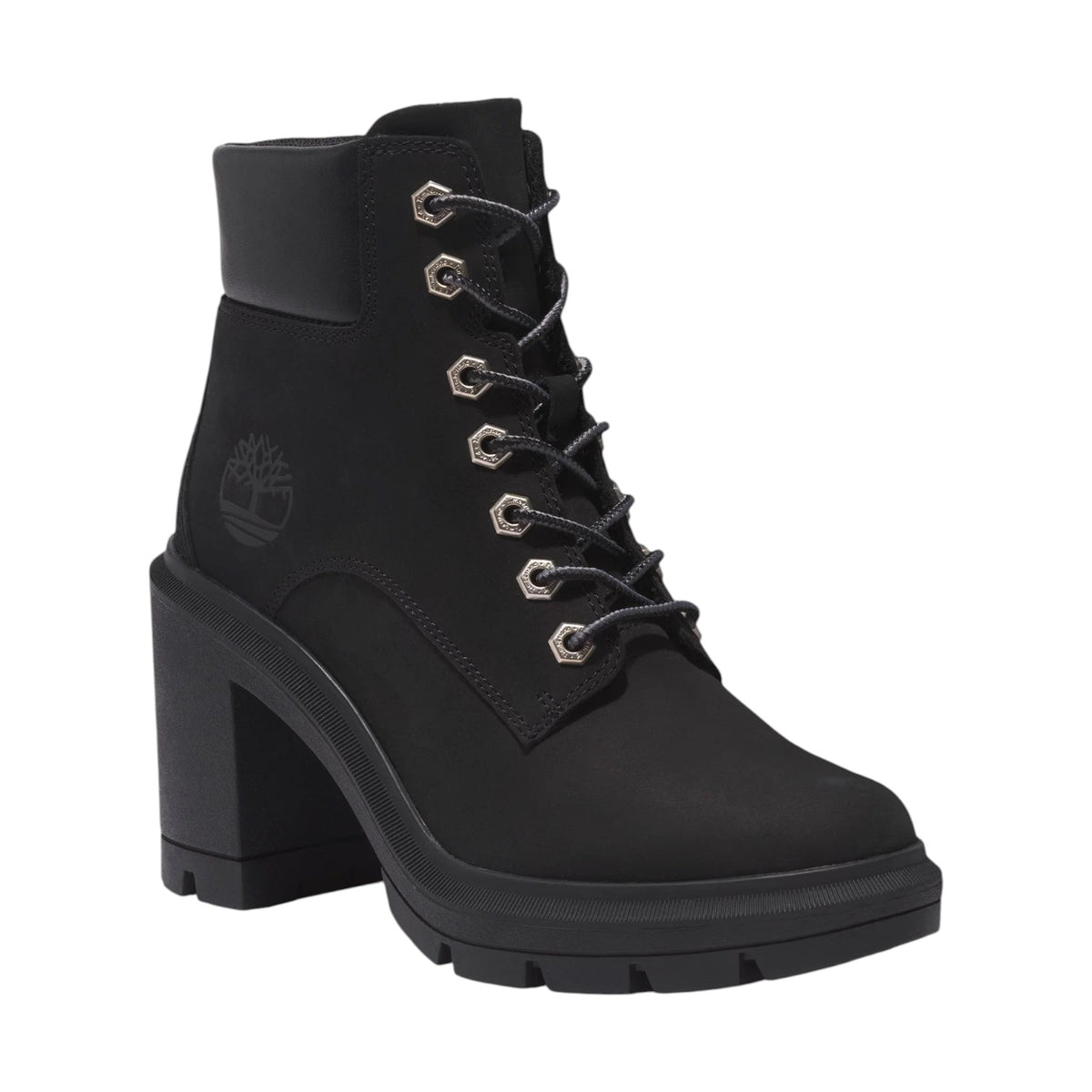 Timberland Stivaletto Donna in Nabuck Nero con Tacco Largo Alto 100mm Allinghton Heights Mid Lace Up