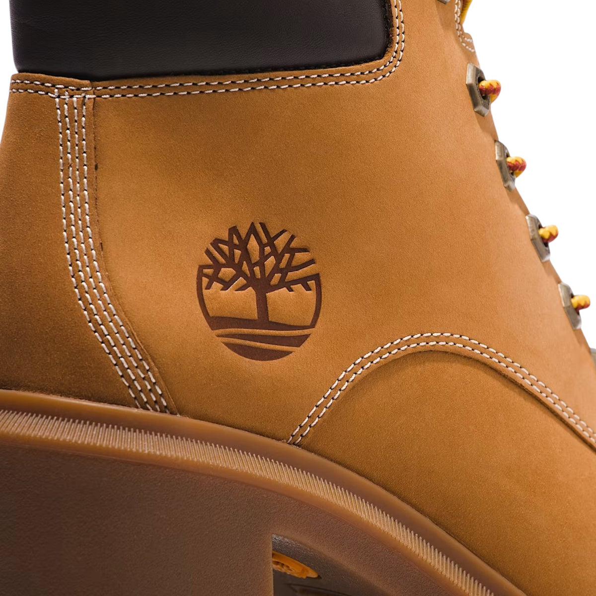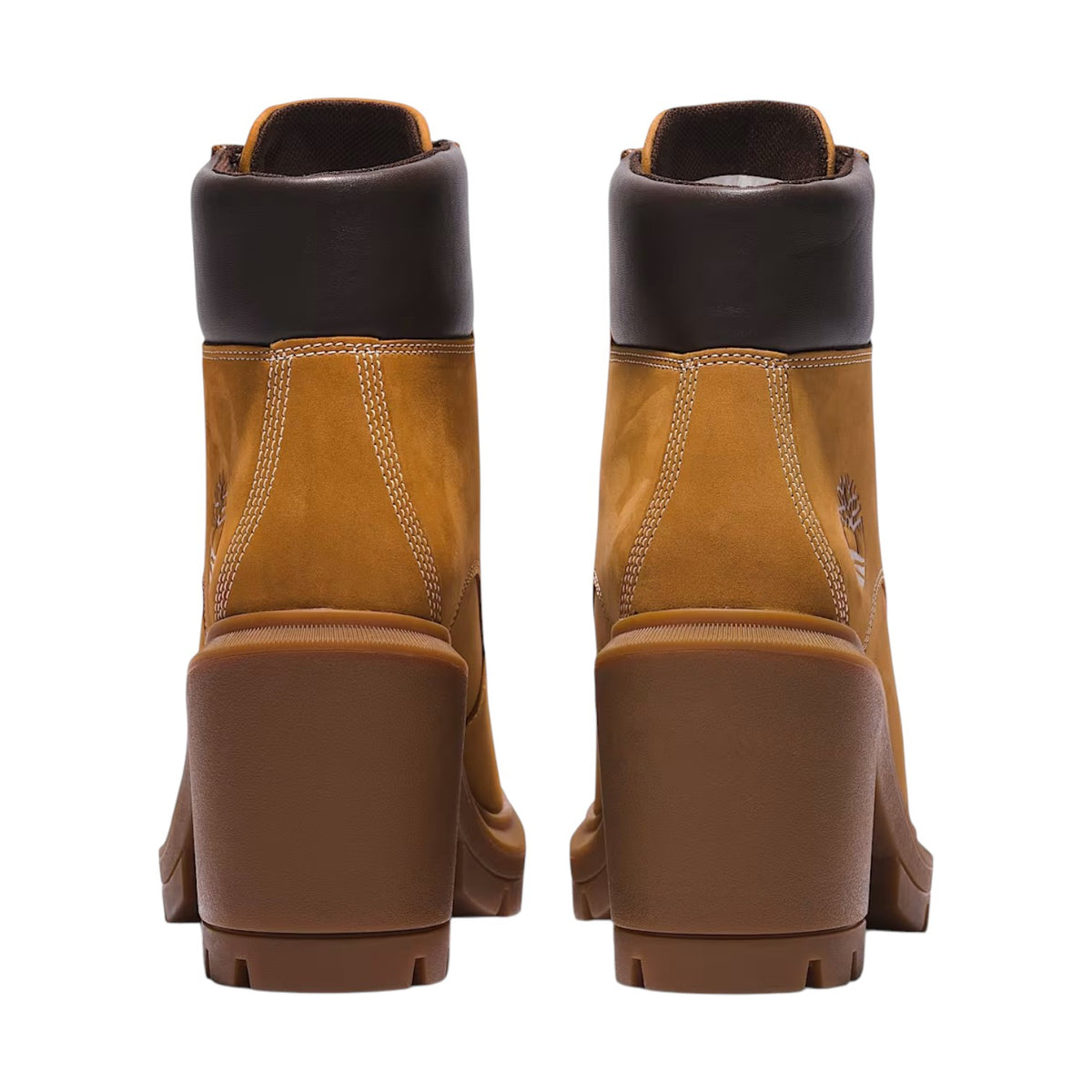 Timberland Stivaletto Donna in Nabuck Ocra con Tacco Largo Alto 100mm Allinghton Heights Mid Lace Up