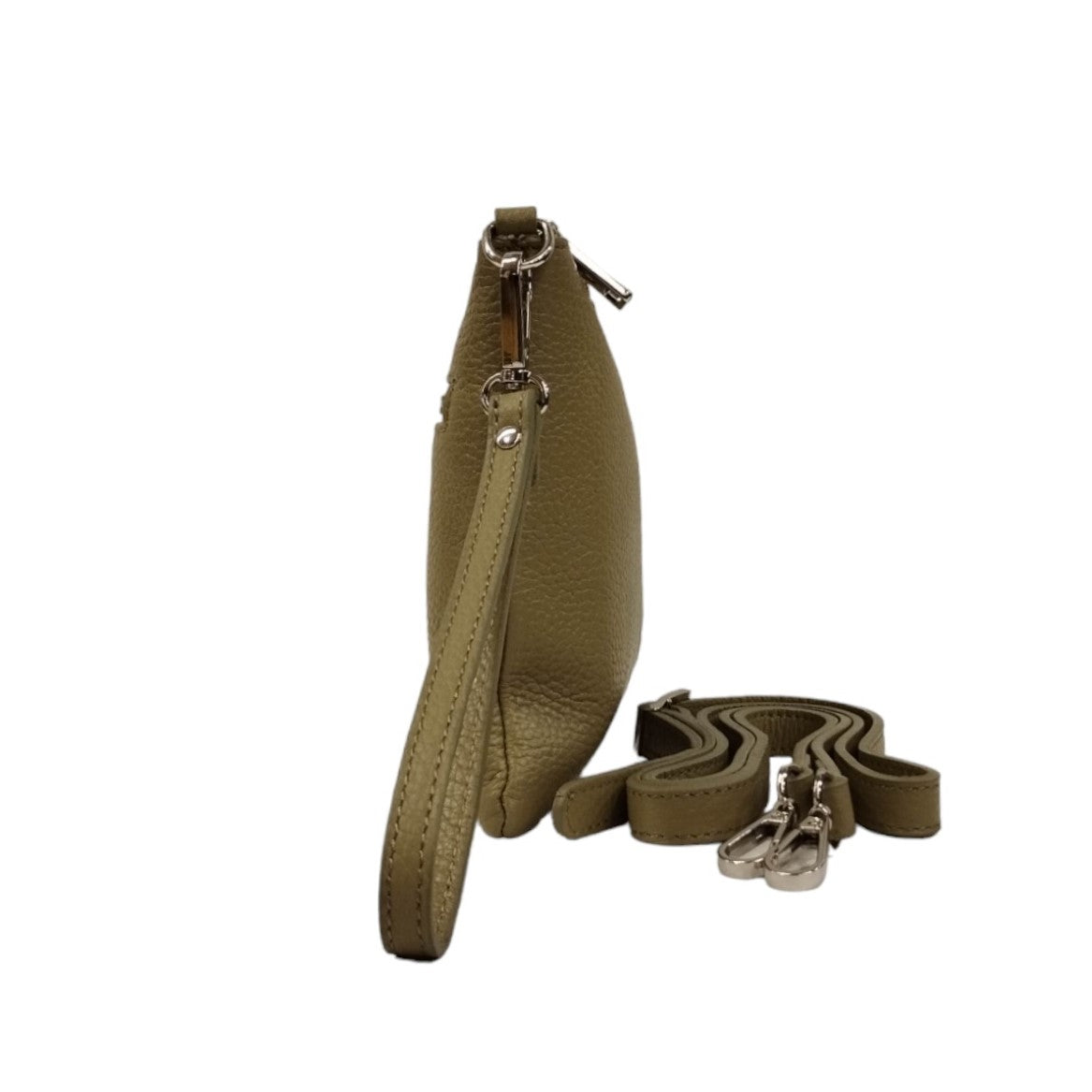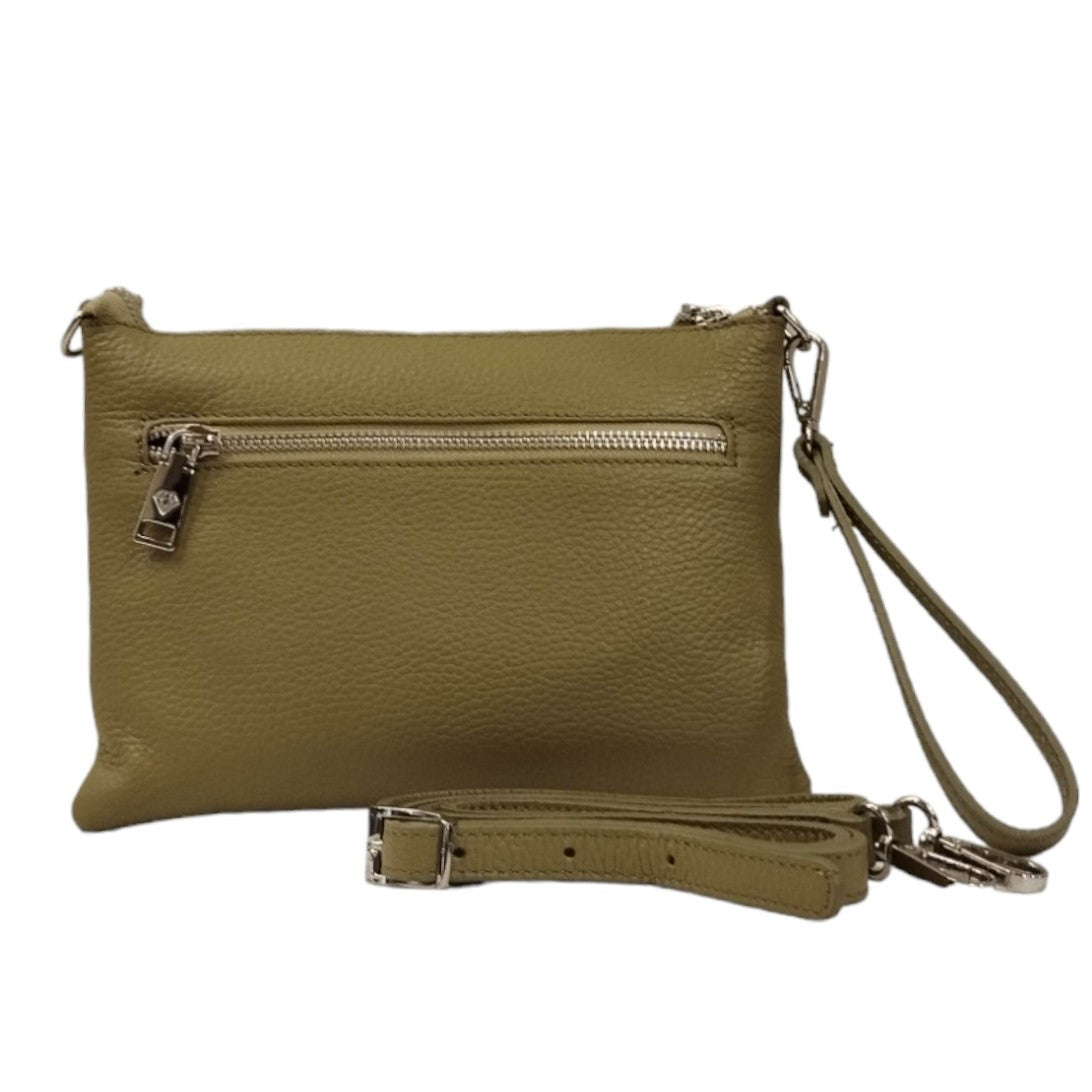 Caleidos Borsa a Tracolla Donna in Pelle Verde Militare con Polsino Removibile