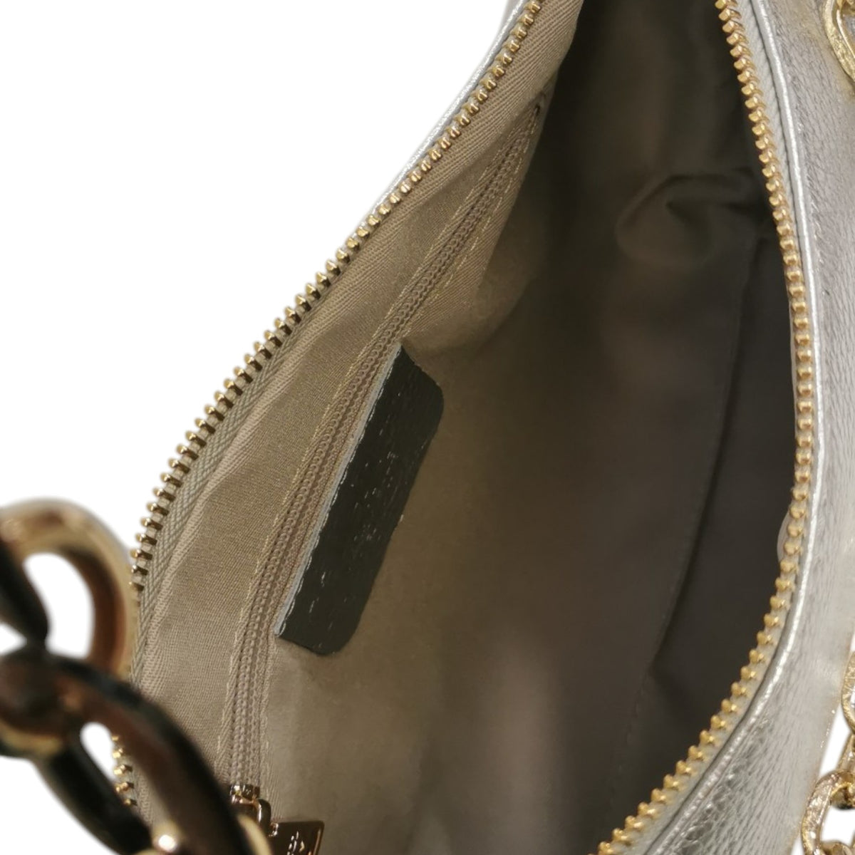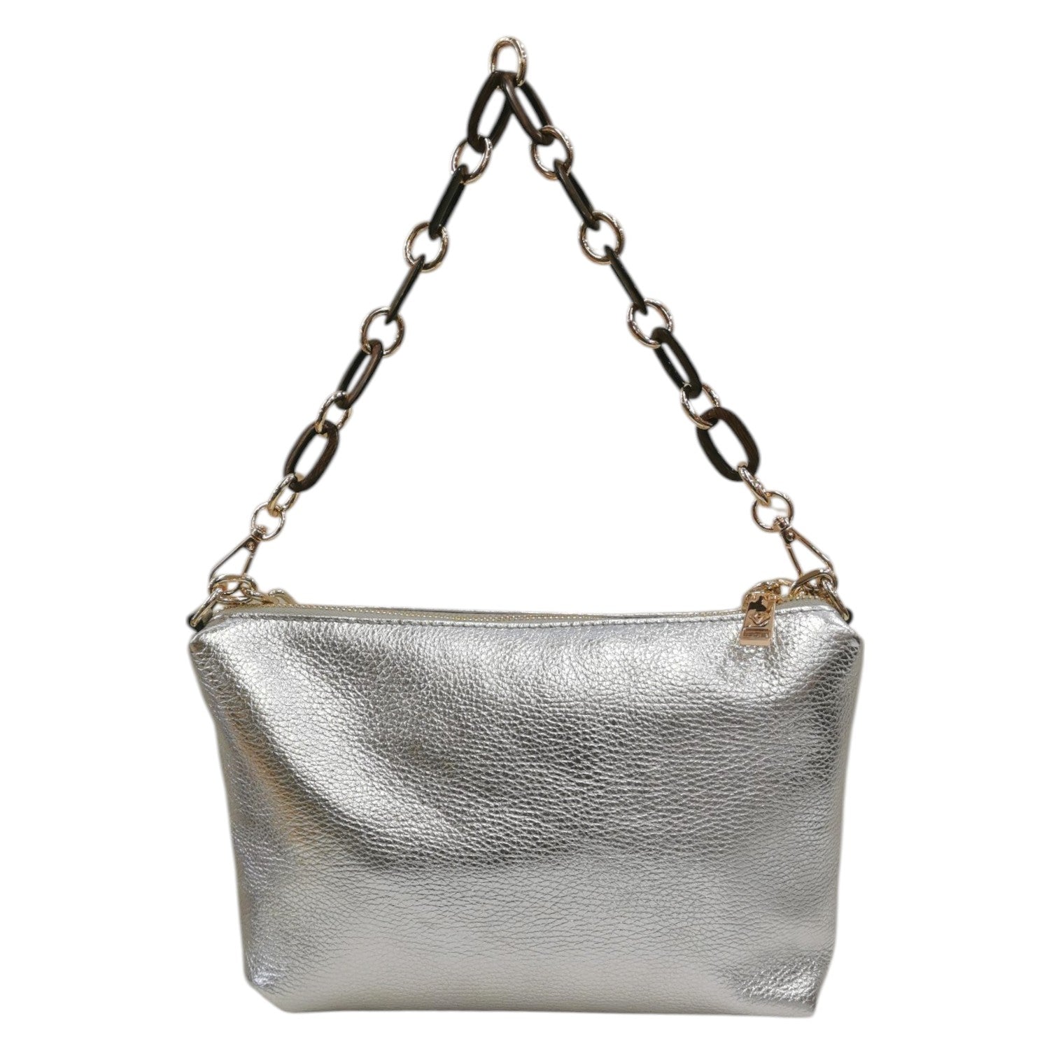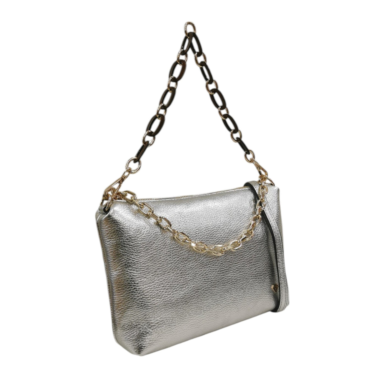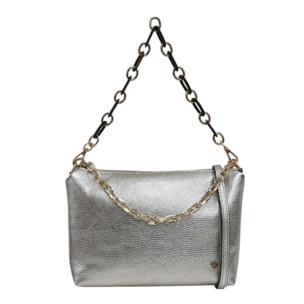 Caleidos Pochette Donna in Pelle Argento con Tracolla e Catena Dorata