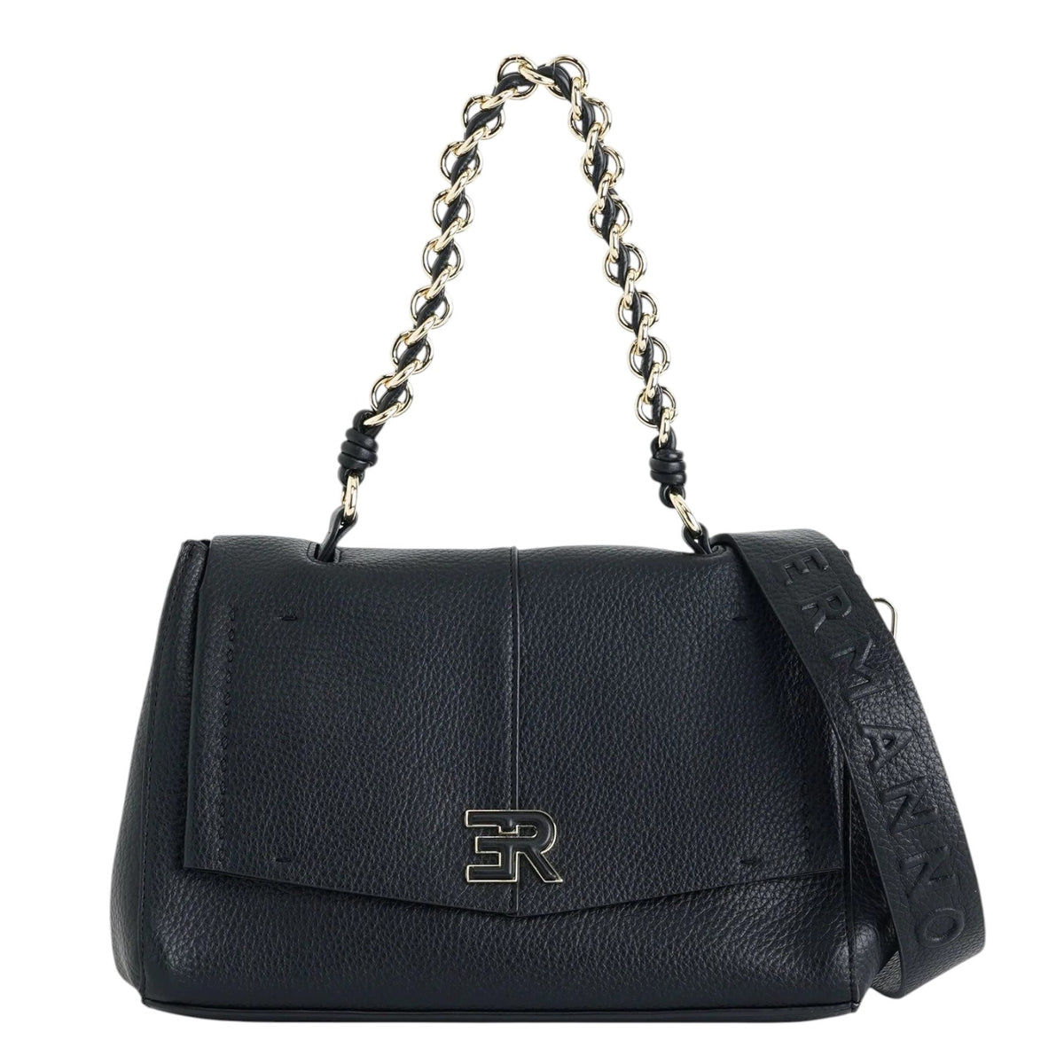 Ermanno Scervino Borsa a Spalla Grande Donna in Ecopelle Nera con Manico a Catena e Tracolla
