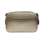 La Camera Bag firmata Nannini Firenze, realizzata in saffiano è caratterizzata da logo frontale in metalleria color oro e da tracolla regolabile e removibile, inoltre dispone di doppio scompartimento foderato internamente in tessuto logato e presenta una tasca chiusa a zip.