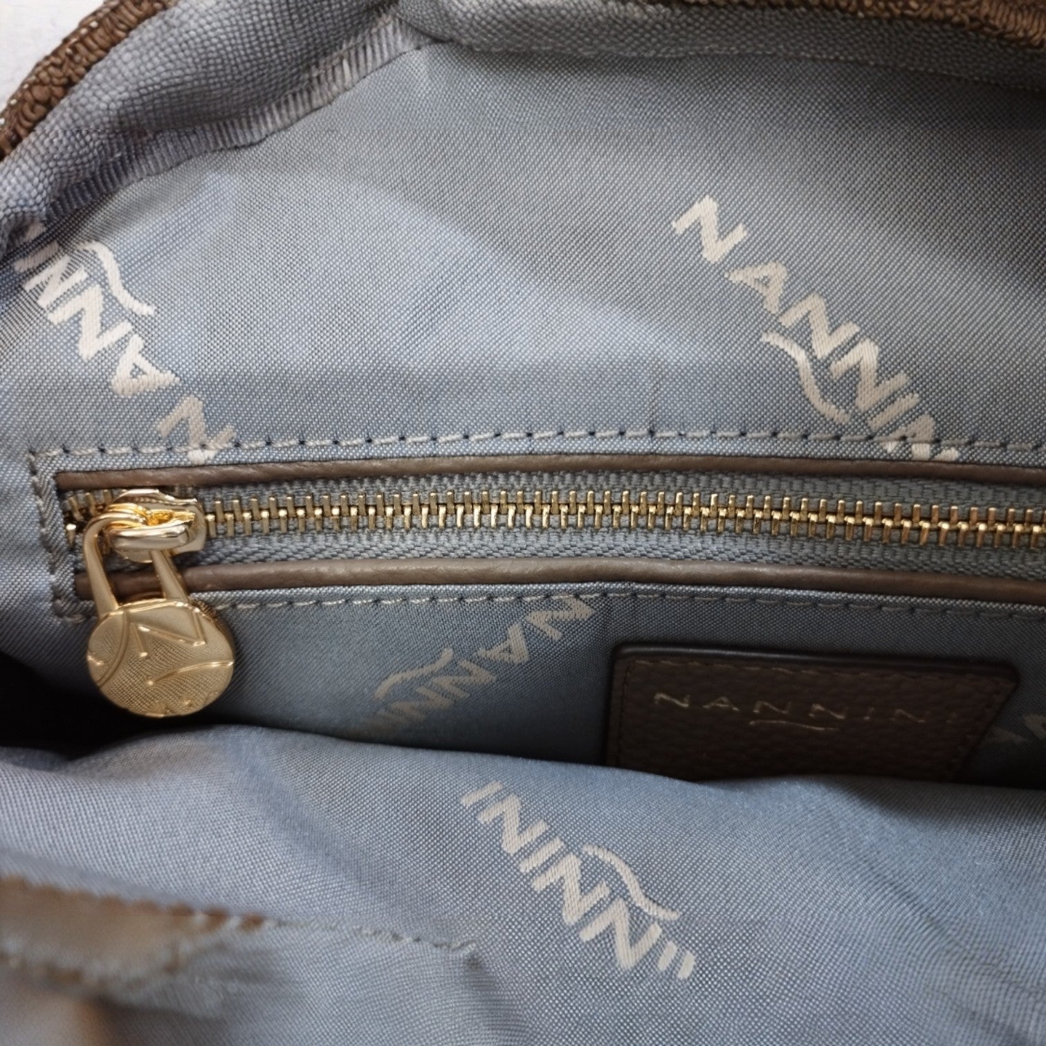 La Camera Bag firmata Nannini Firenze, realizzata in vera pelle martellata è caratterizzata da logo frontale in metalleria color oro e da tracolla regolabile e removibile, inoltre dispone di doppio scompartimento foderato internamente in tessuto logato e presenta una tasca chiusa a zip.