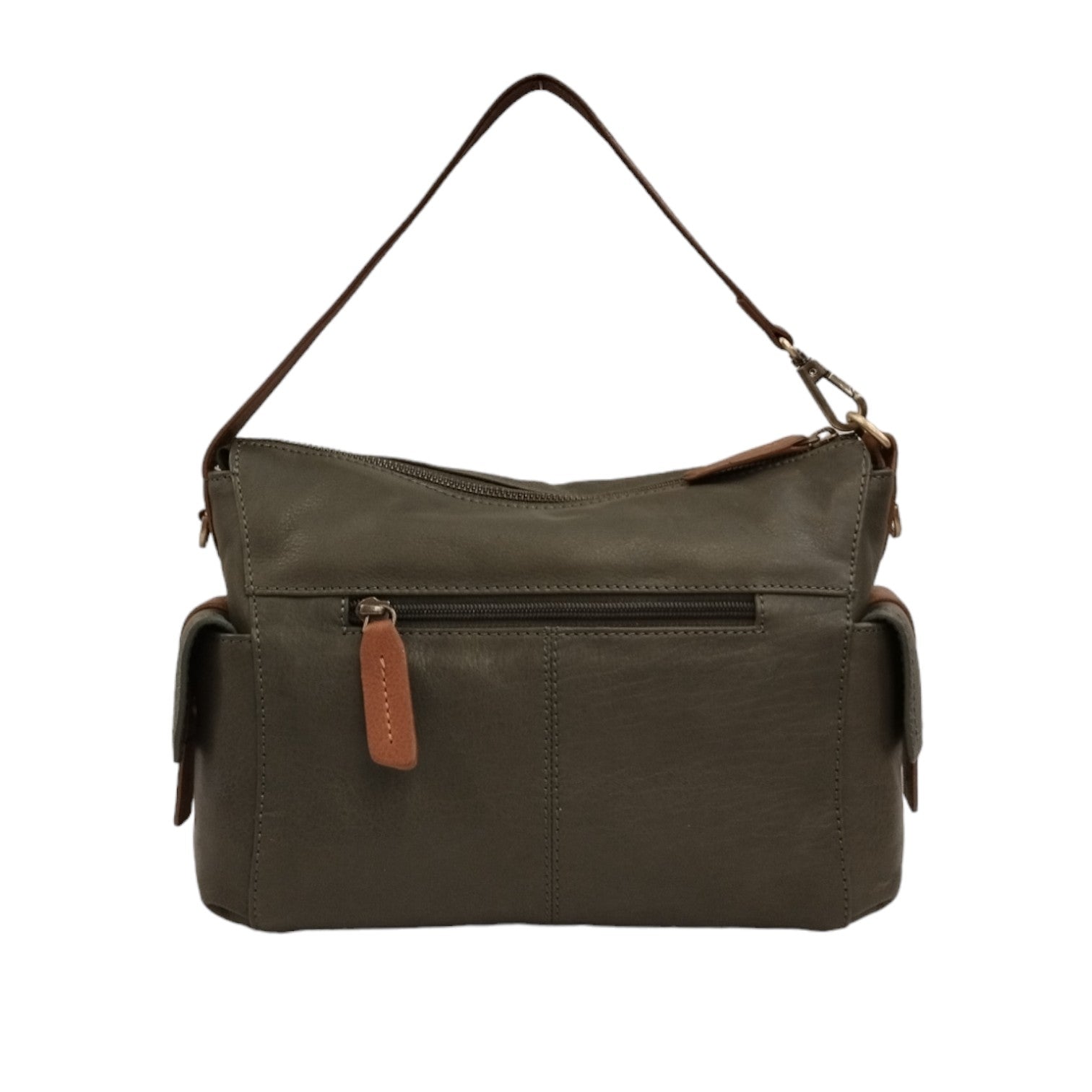 Gianni Conti Borsa a Spalla Media Donna in Pelle Verde con Tracolla e Tasche Laterali