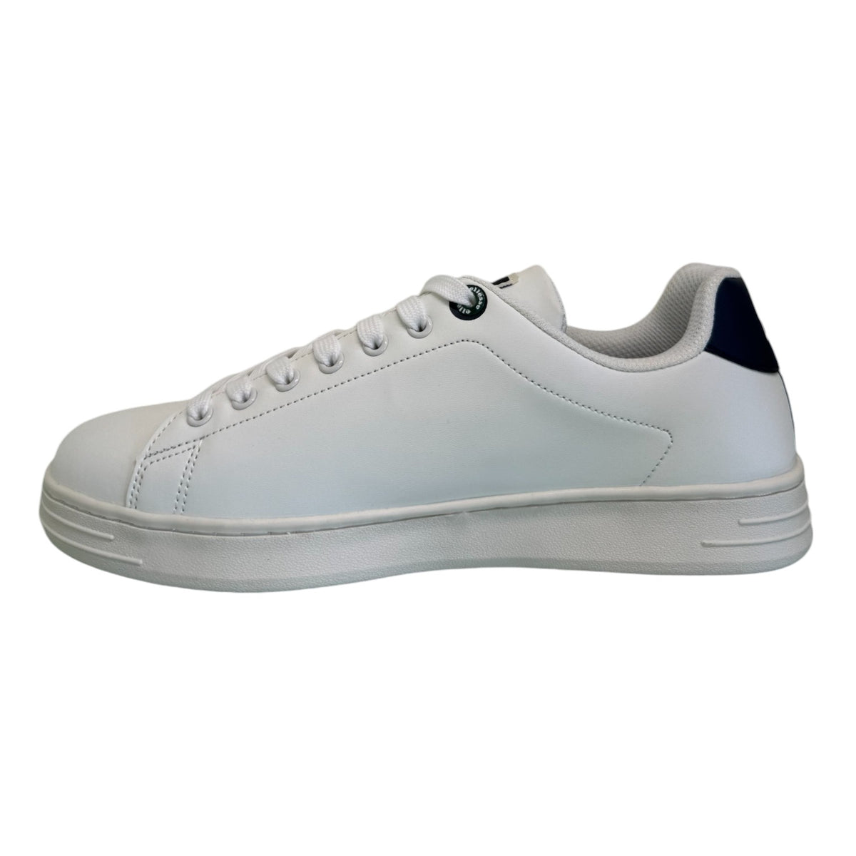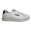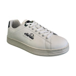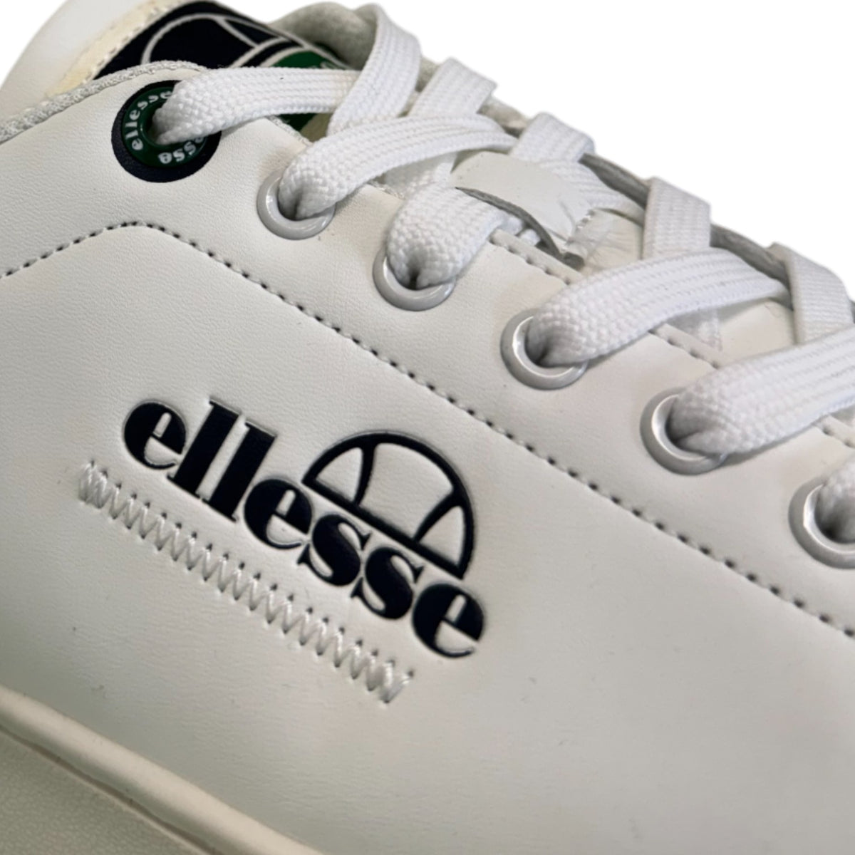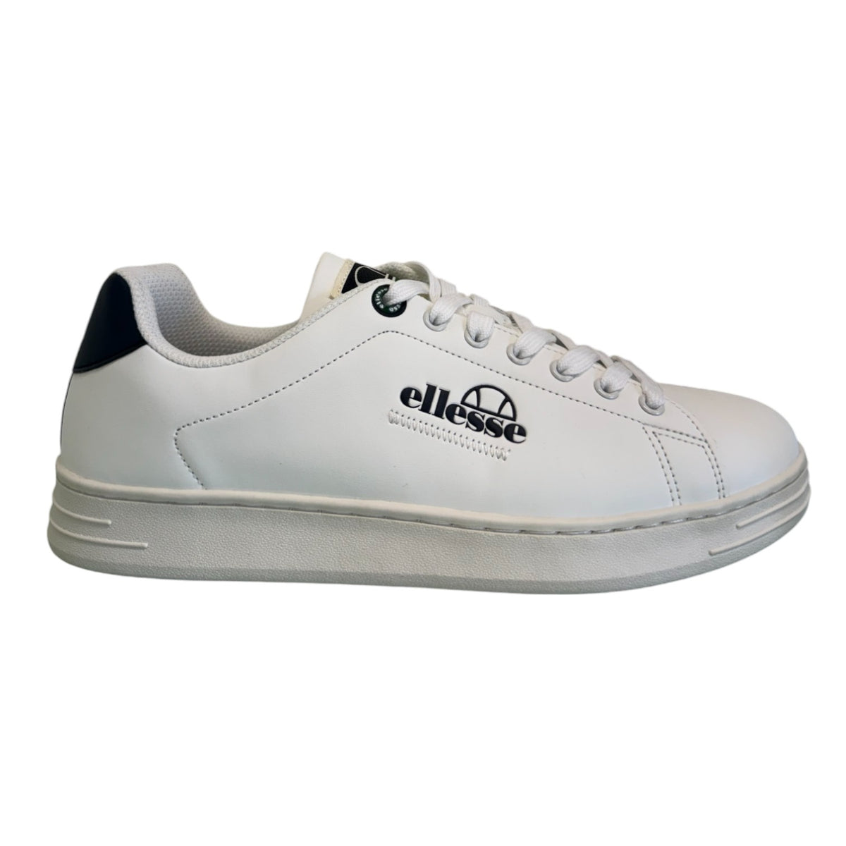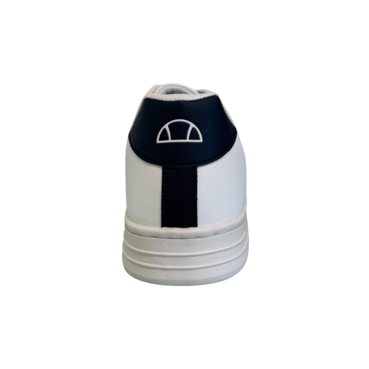 La Sneakers firmata Ellesse, modello casual realizzata in ecopelle qui proposta nella variante bianca è caratterizzata da inserti blu scuro e da interno foderato in tessuto traspirante imbottito con sottopiede estraibile rivestito anch'esso in tessuto.