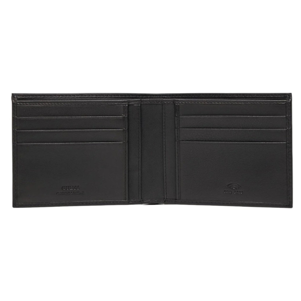Il Portafoglio firmato Guess, realizzato in pelle è caratterizzato da logo metallizzato a contrasto dorato e nero, e da interno con 8 scomparti per tessere e carte di credito, due per la banconote.