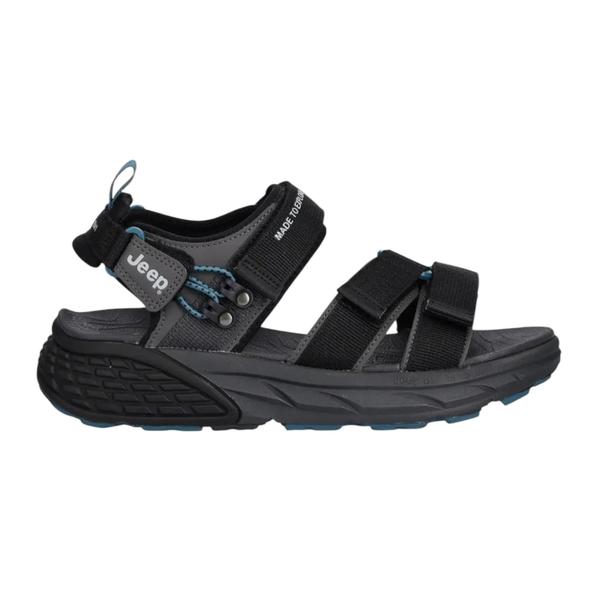 Jeep Sandalo Uomo in Tessuto Nero con Doppio Strappo