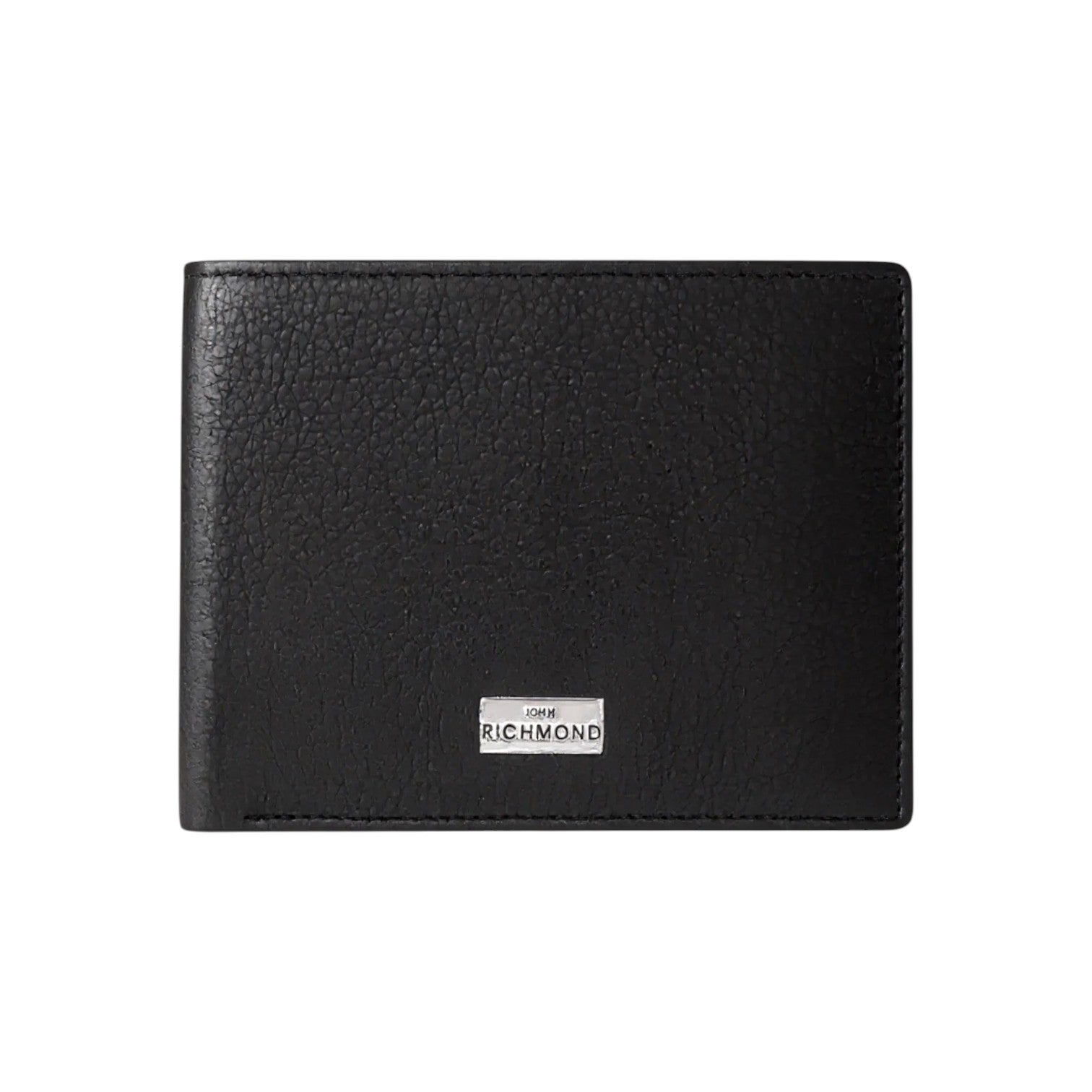 John Richmond Portafoglio Uomo in Pelle Nera con Targhetta Logo Senza Portamonete