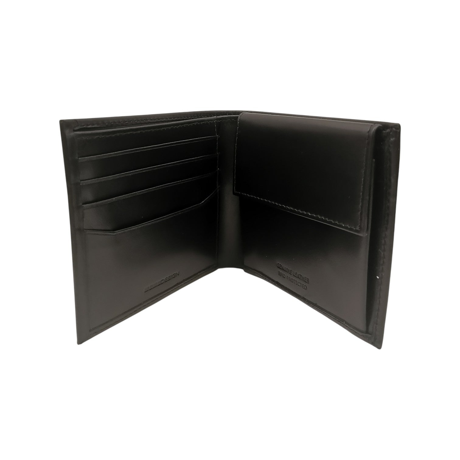 Il Portafoglio firmato Momo Design, realizzato in pelle liscia color nero è caratterizzato da 4 slots portatessere e scomparto banconote, e taschino per le monetine. Pratico per l'uso di tutti i giorni.