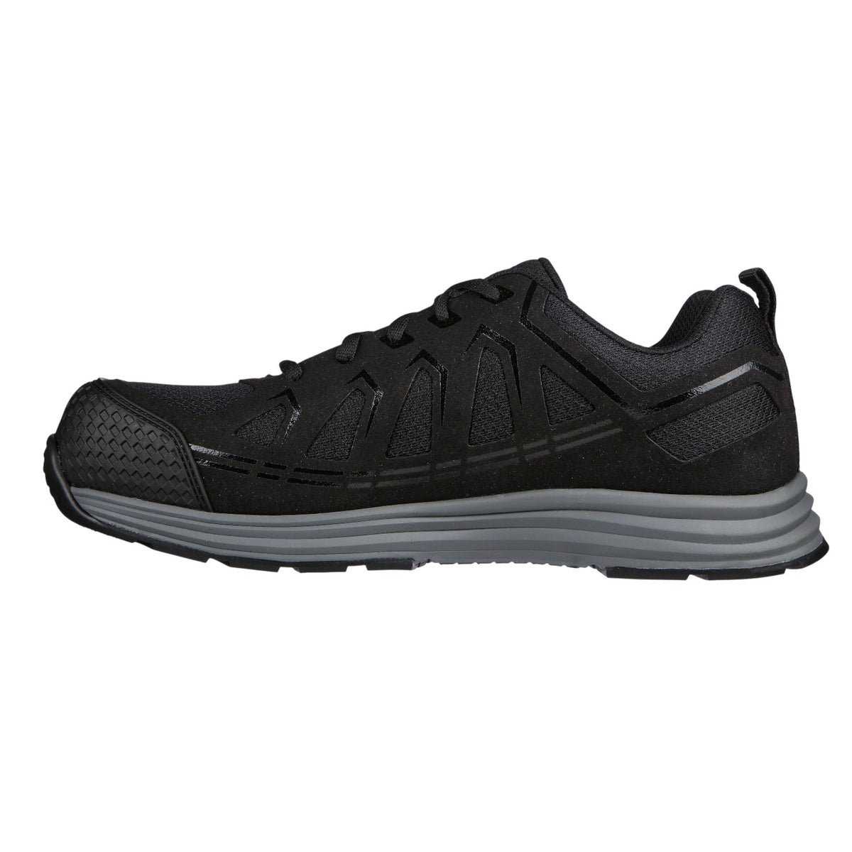 La Sneakers firmata Skechers, antinfortunistiche, qui proposte nella variante nera. Sono realizzate con tomaia in ecopelle e tessuto, mentre la soletta in tessuto è in Memory Foam. Modello funzionale allacciato presenta una punta di sicurezza composita.