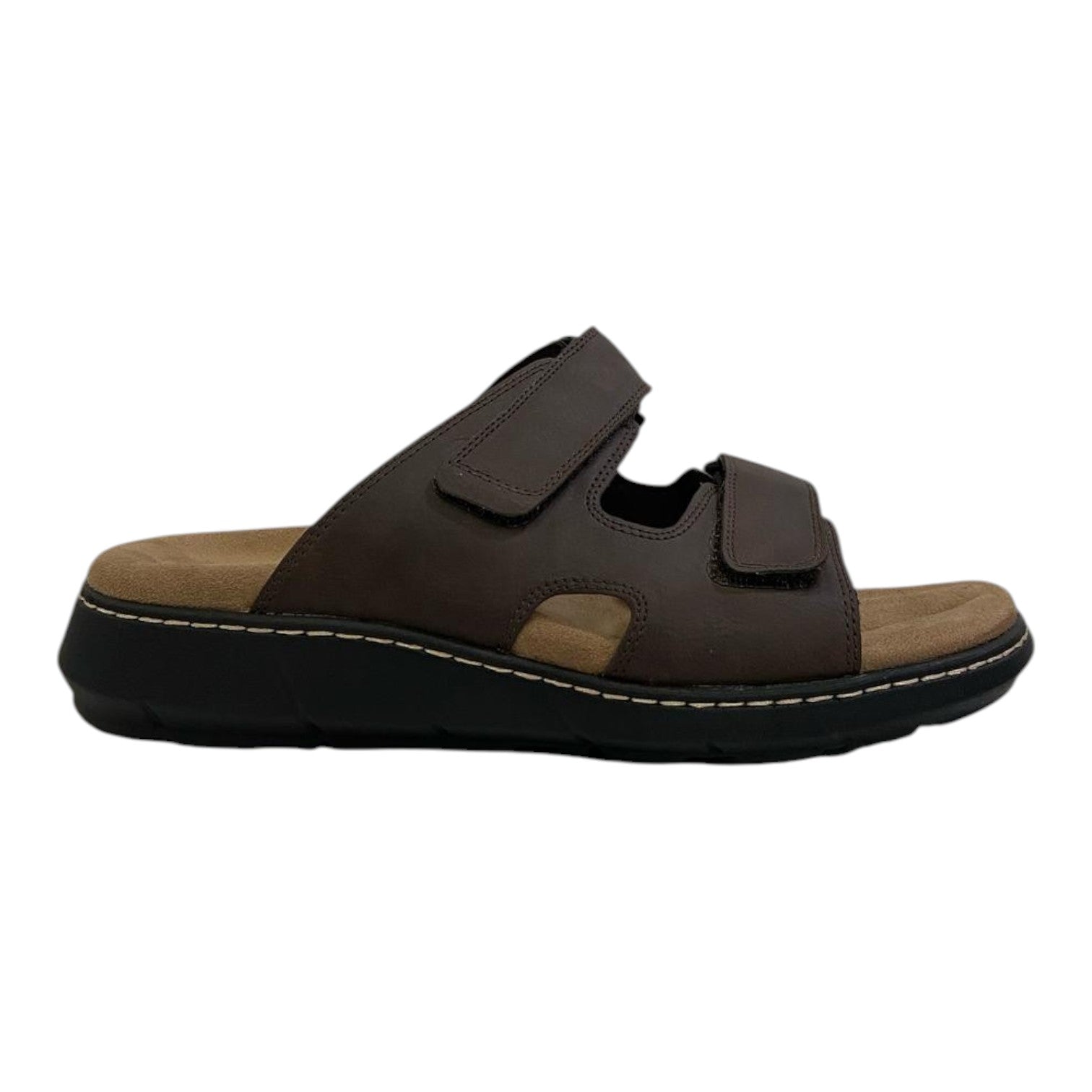 La Ciabatta firmata Valleverde, super confortevole dotato di suola gomma e caratterizzato da un look eclettico con doppia strappo regolabile è realizzata in pelle marrone, leggera e traspirante, si contraddistingue per un alto livello di ammortizzazione, grazie al sistema sofstistem.