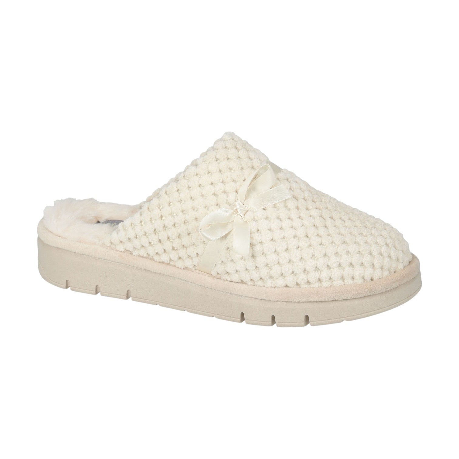 Valleverde Pantofola Donna in Tessuto Panna con Fiocchetto