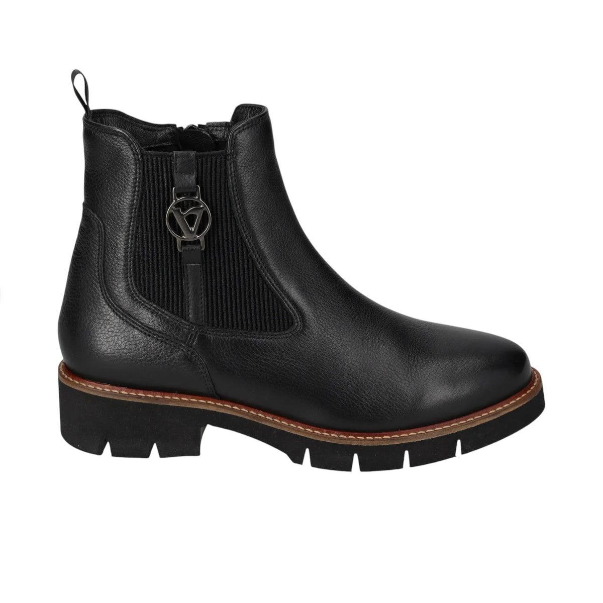 Valleverde Stivaletto Donna in Pelle Nera con Elastico e Accessorio Logato