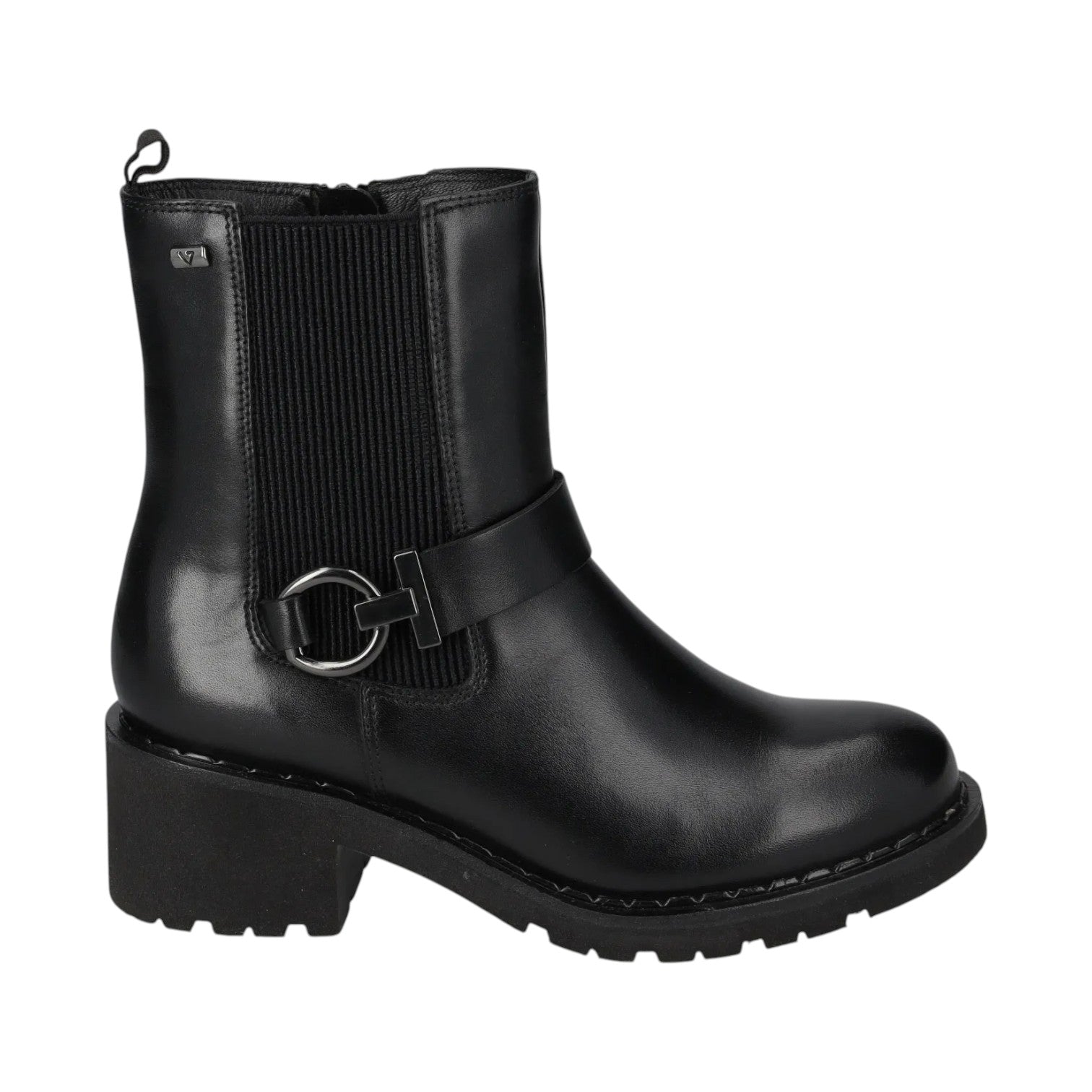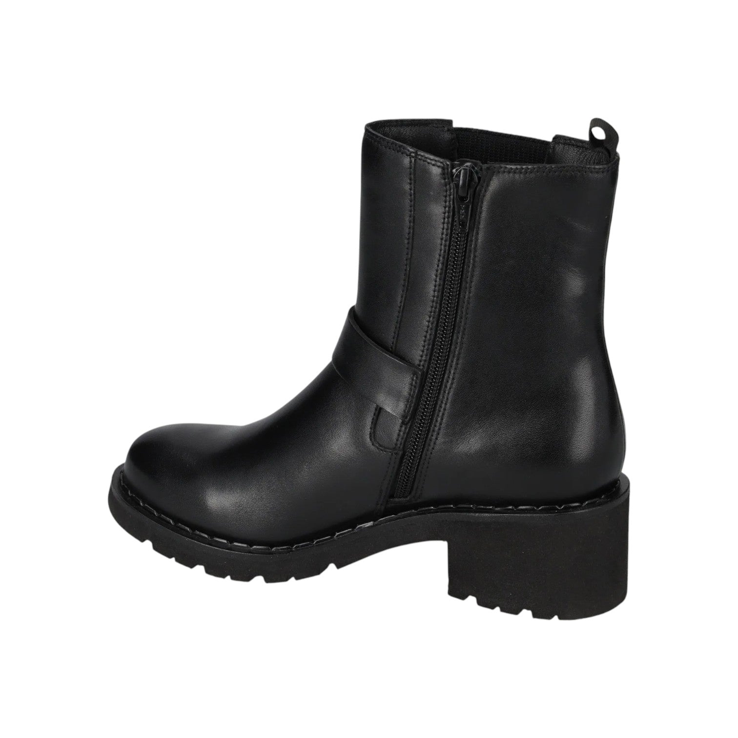 Lo Stivaletto firmato Valleverde, realizzato in pelle qui proposto nella variante nera è caratterizzato da accessorio decorativo e da comoda chiusura a zip per facilitarne la calzata, inoltre presenta una fodera imbottita e un tacco largo alto 5cm che slancia la figura.