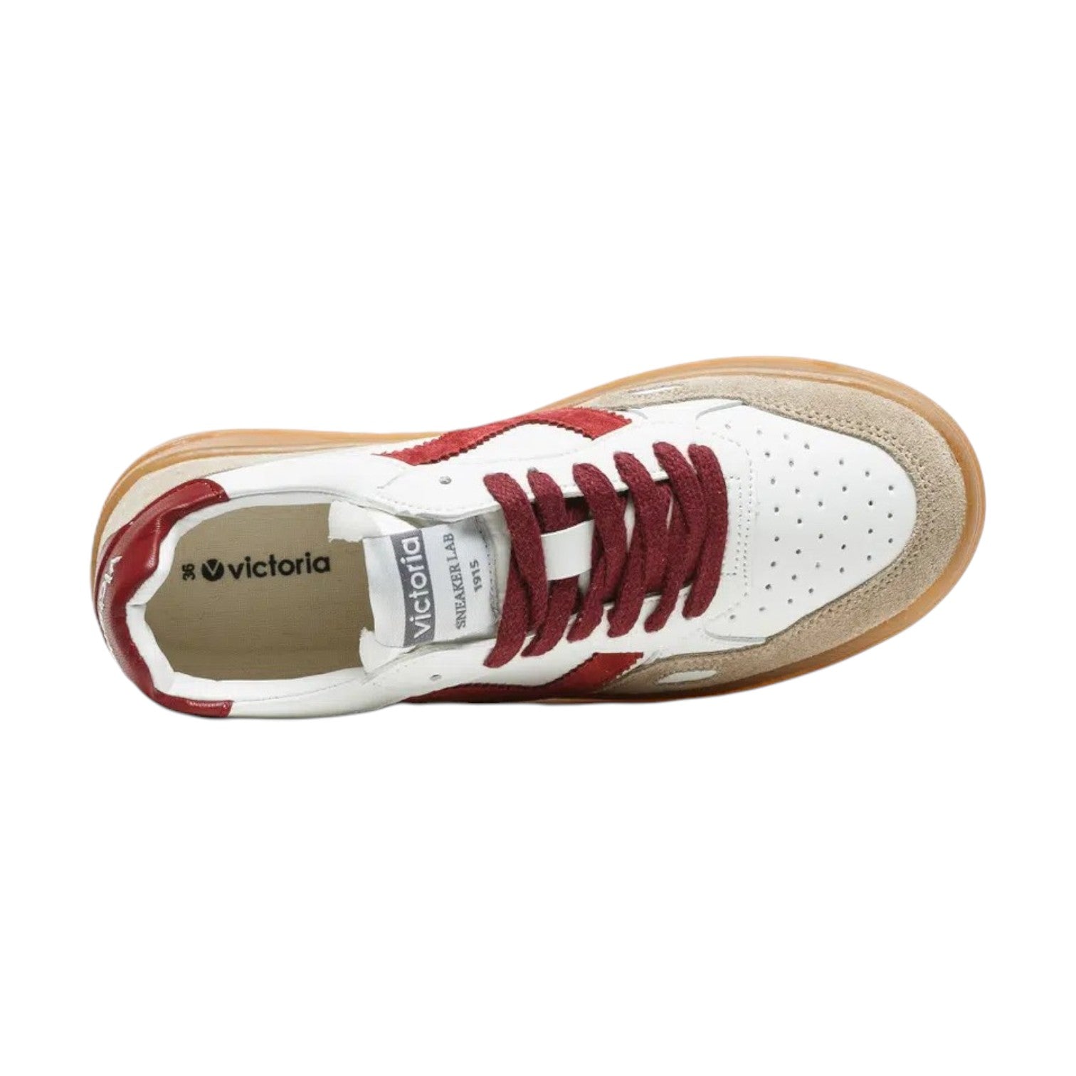 Victoria Sneakers Donna in Pelle e Camoscio Bianca Bordeaux