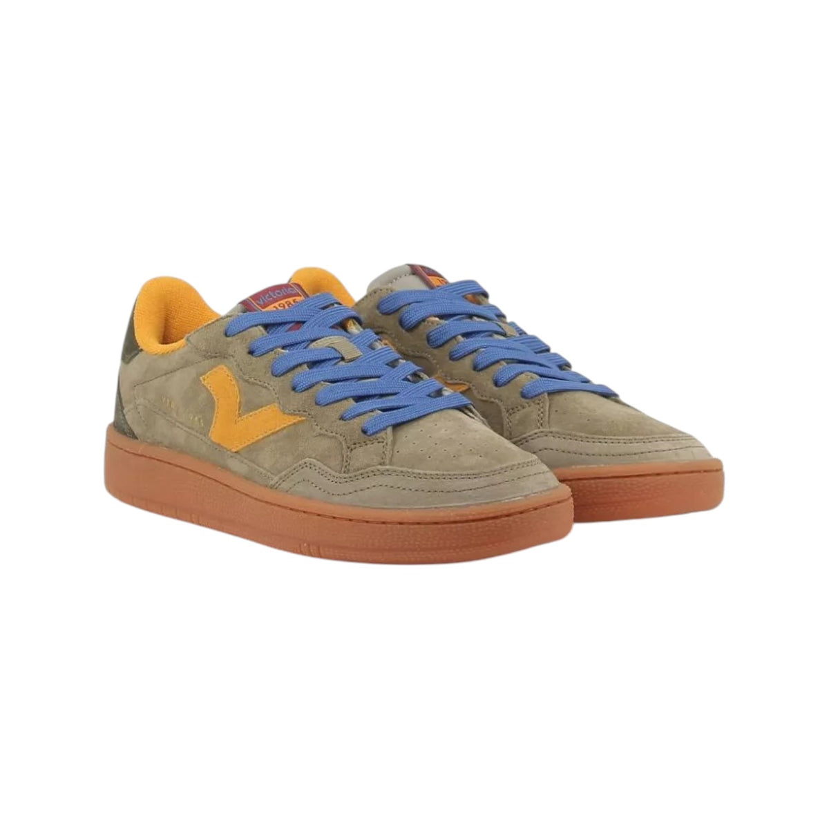 Victoria Sneakers Uomo in Camoscio Kaki con Lacci Blu